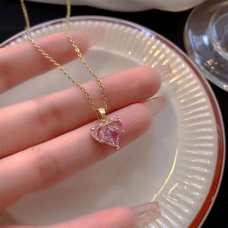 2024 new style pink loving heart zircon necklace girly simplicity fashion high sense temperament clavicle chain sweet peach heart