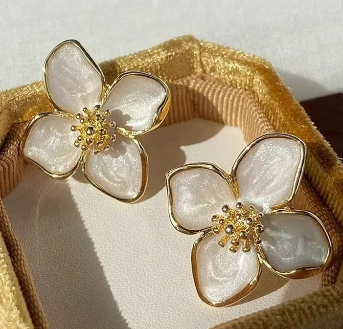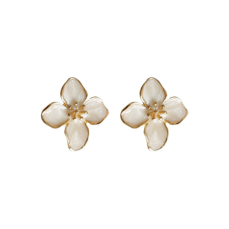 潮个性气质四叶草滴油耳钉简约花朵立体耳环高级感耳饰