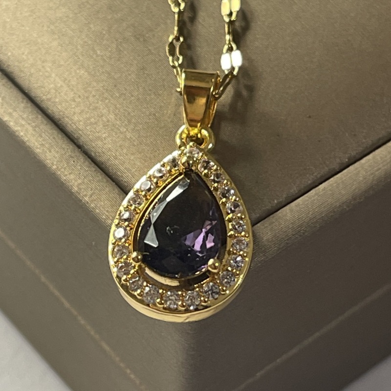 INS网红热销微镶锆石项链18K金不锈钢红宝石轻奢吊坠个性百搭