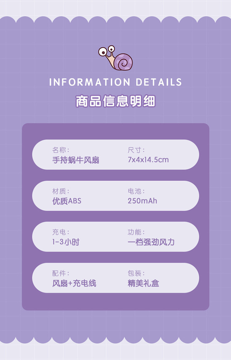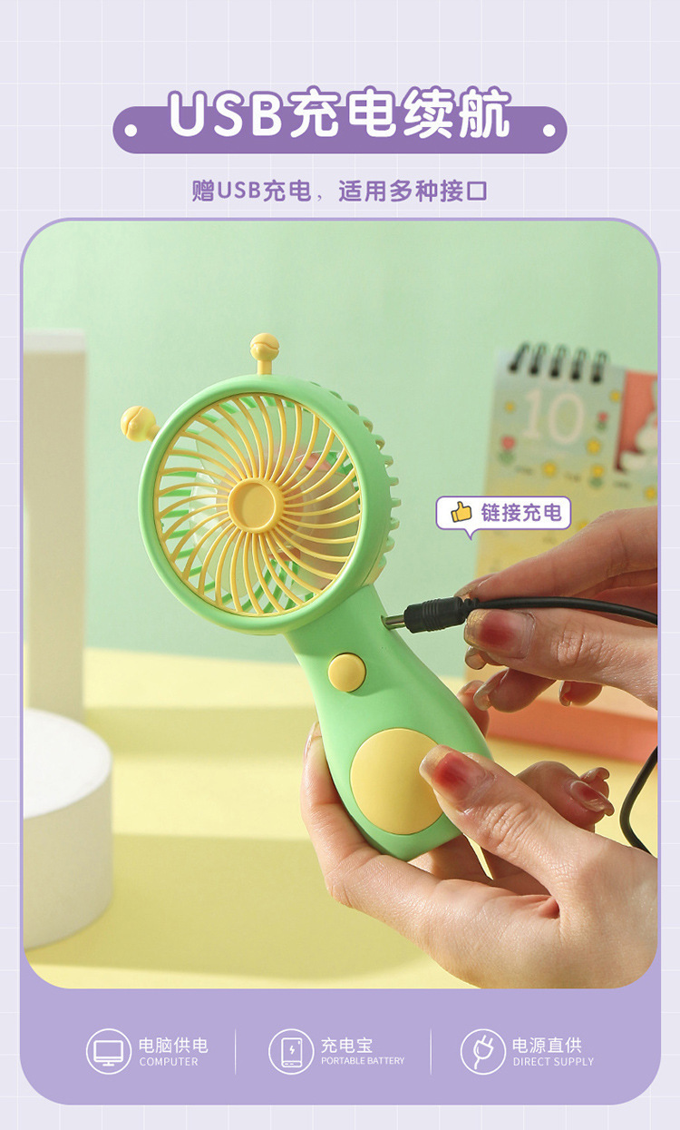 夏季网红爆款高颜值可爱小蜗牛手持usb充电风扇 迷你小巧口袋风扇