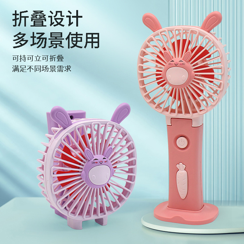 2024新款手持迷你风扇 可爱卡通usb充电灯光小电风扇礼品跨境