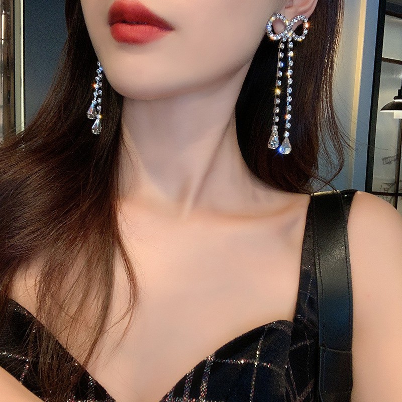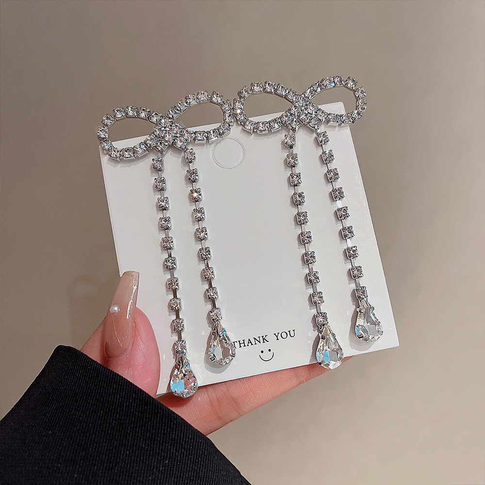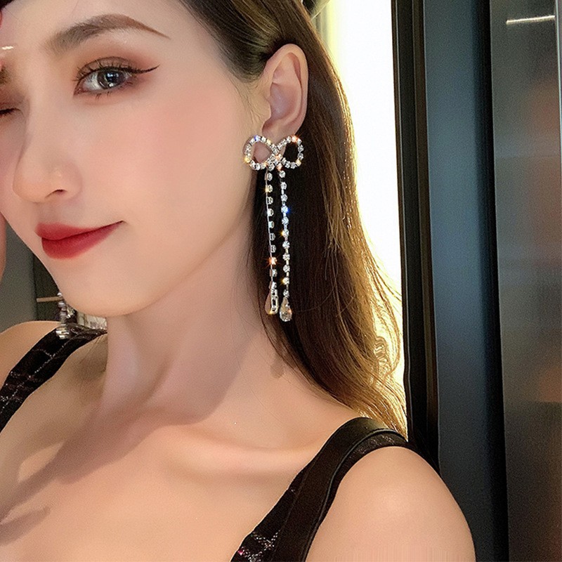 韩版新款蝴蝶结流苏耳环秋冬高级感长款耳饰气质夸张耳钉女批发