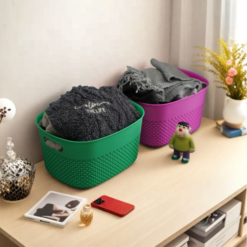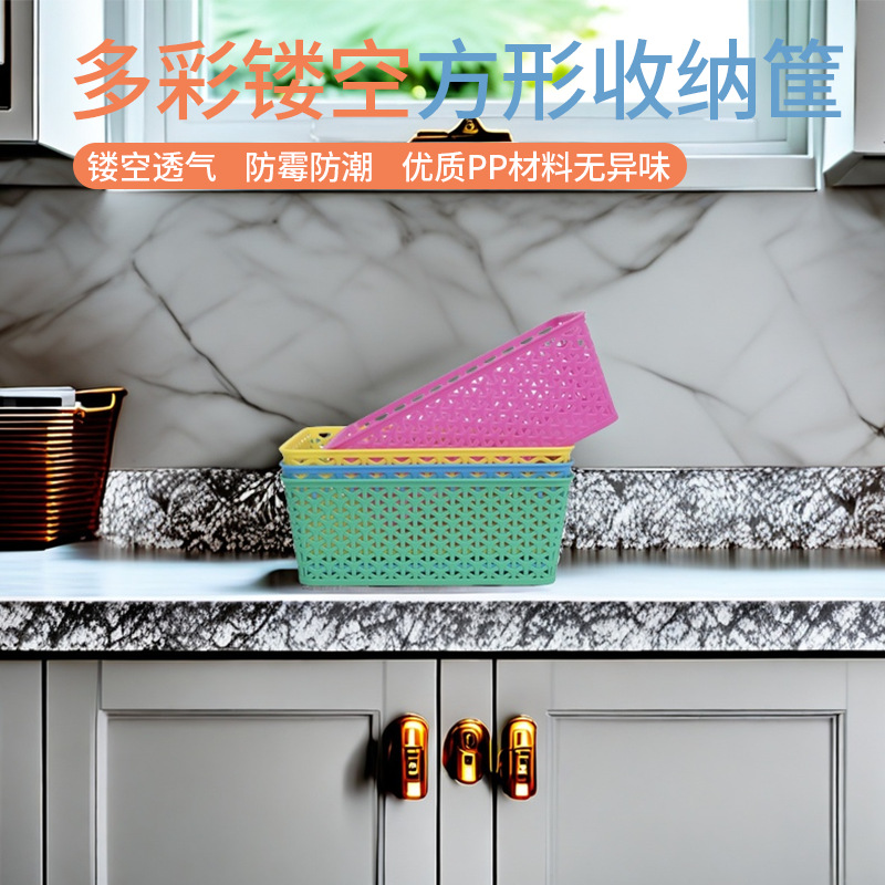 日用大容量方形镂空塑料篮子大号厨房收纳筐手提仓库收纳篮子