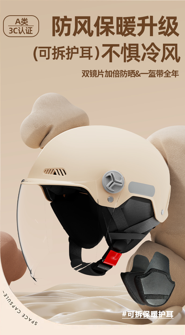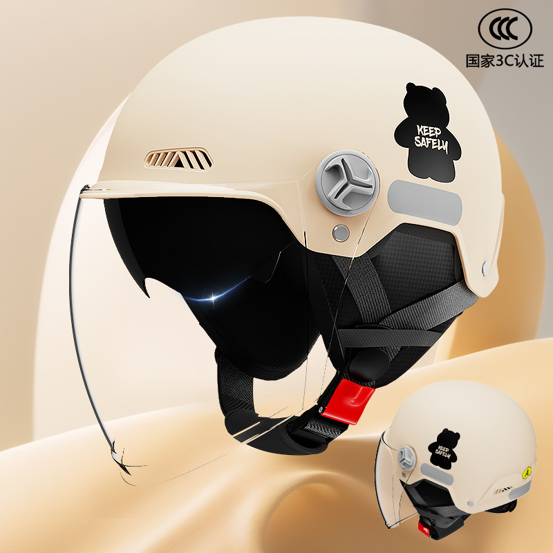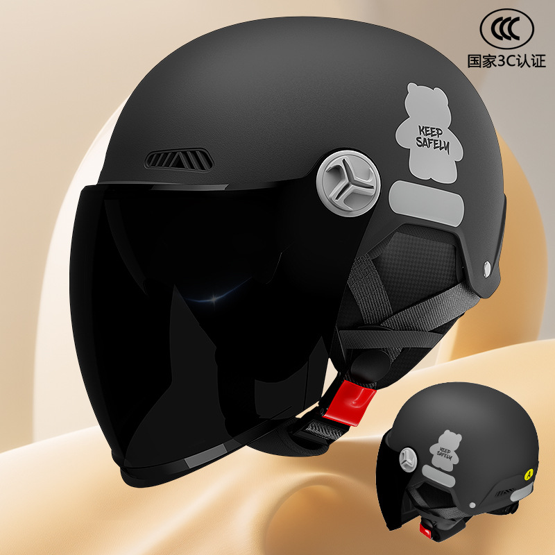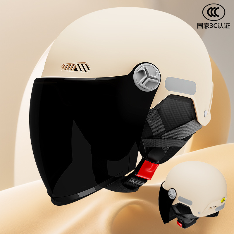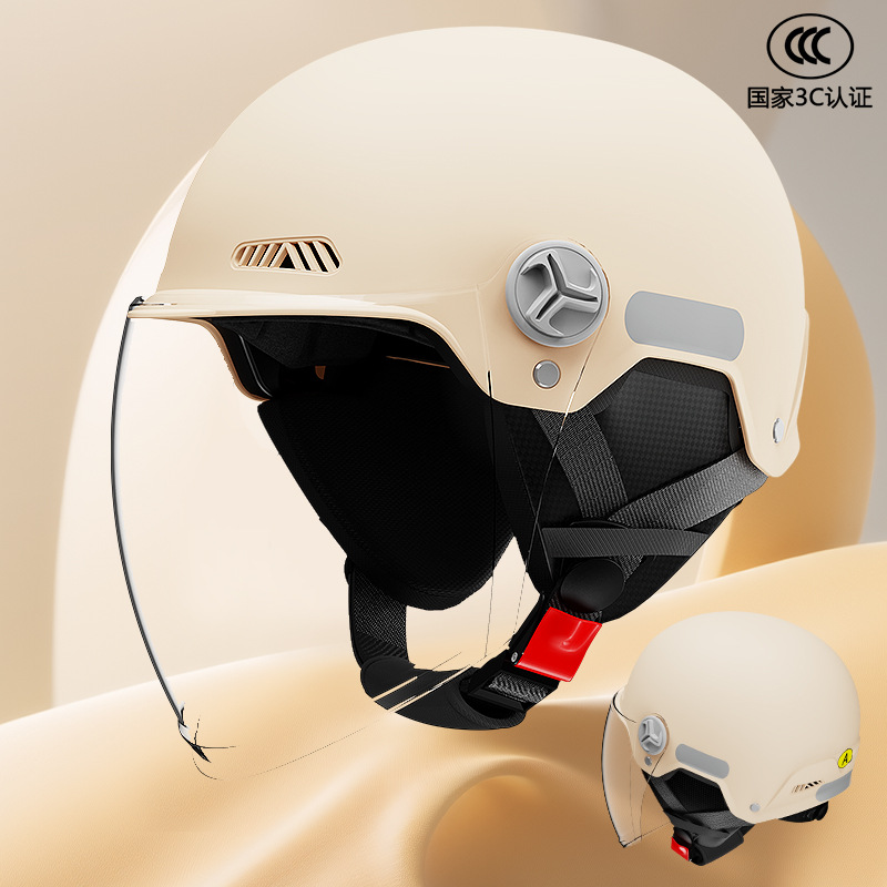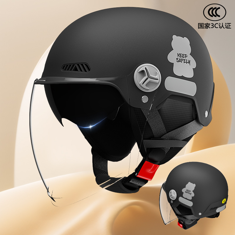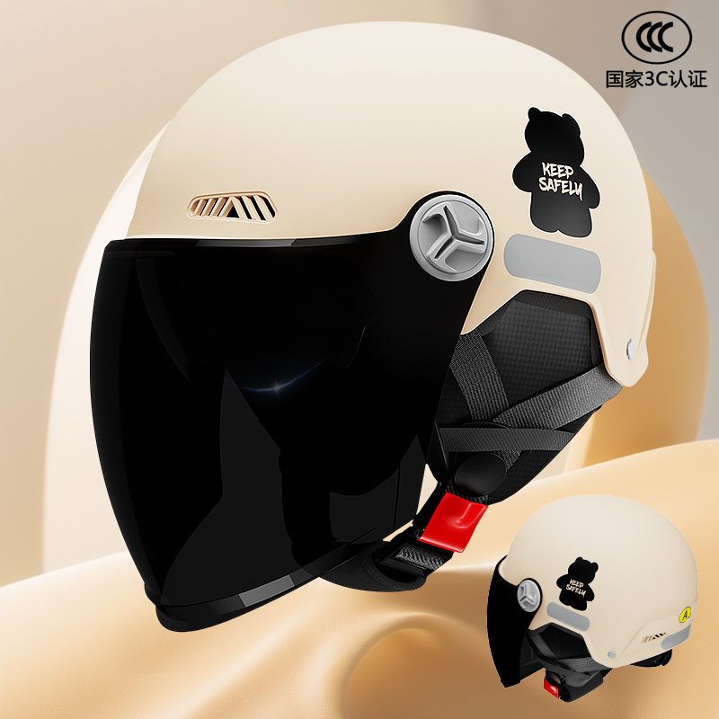 3C认证电动车头盔女士四季通用摩托车半盔男新国标冬季保暖盔