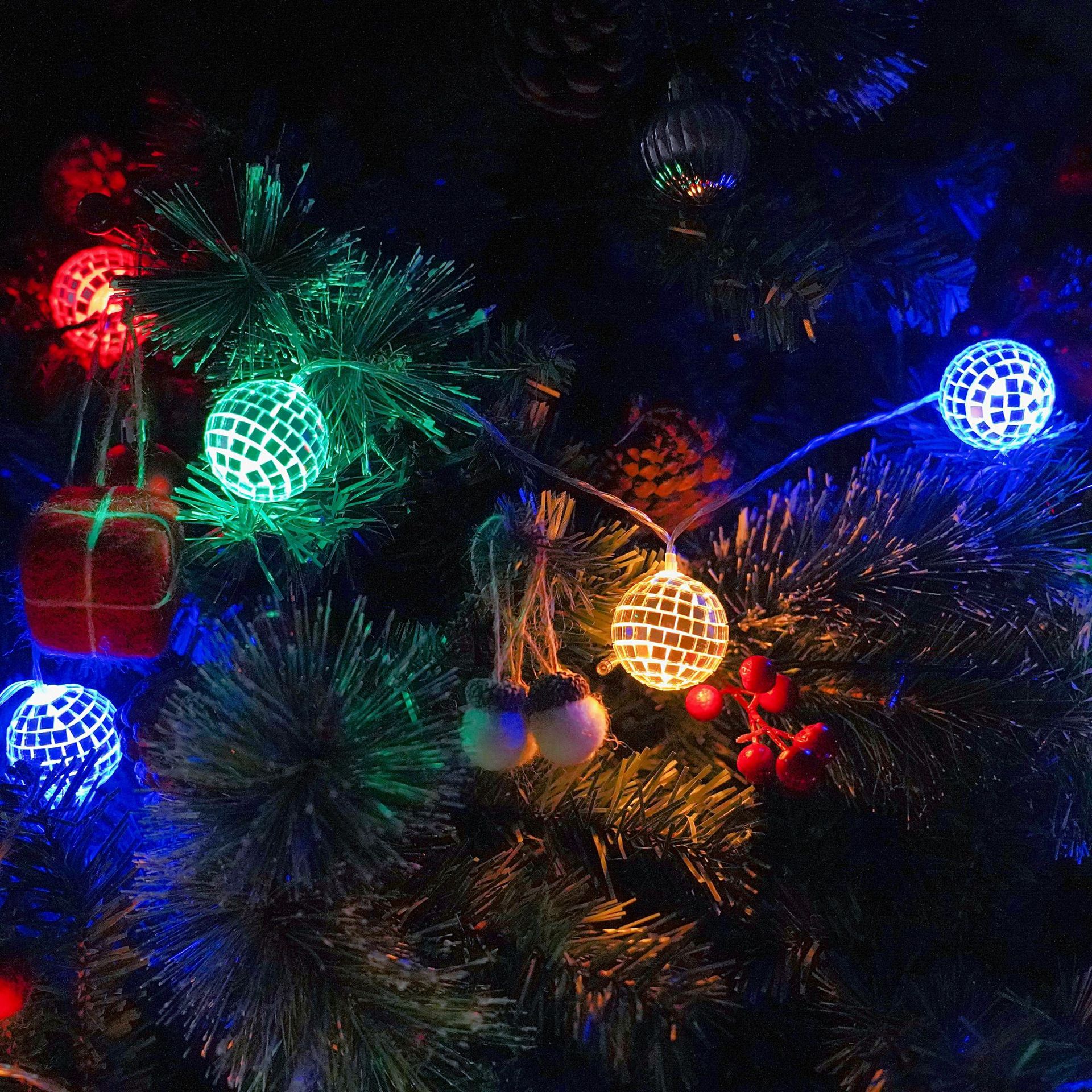 跨境新款LED镜面球灯串迪斯科酒吧派对圣诞球圣诞节日灯装饰彩灯