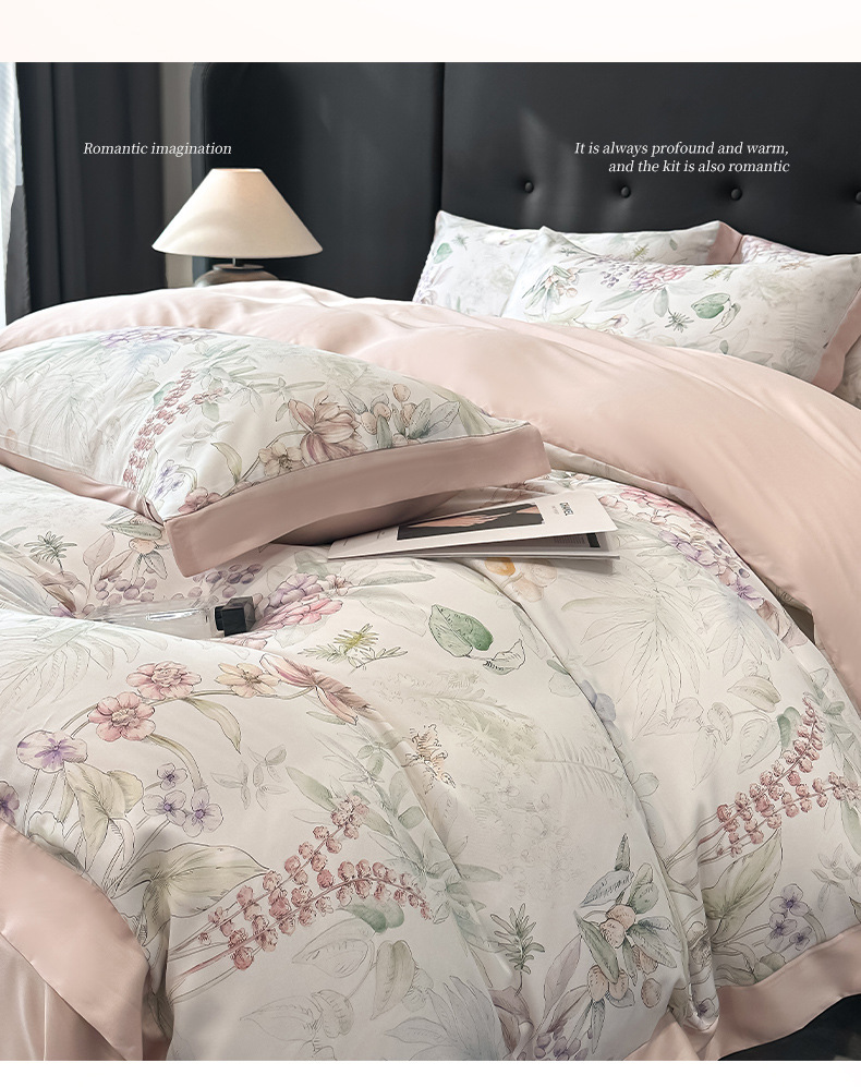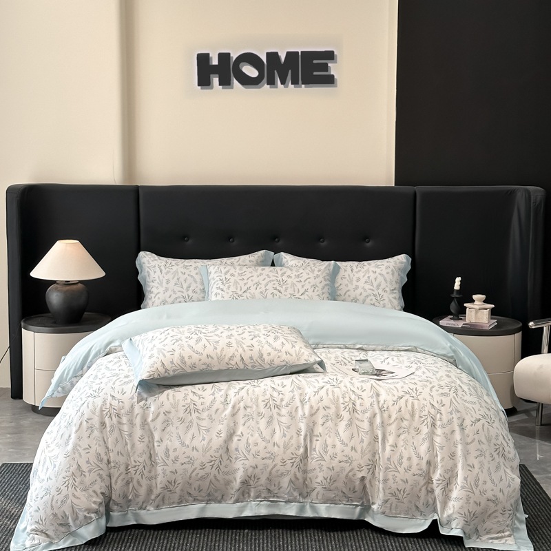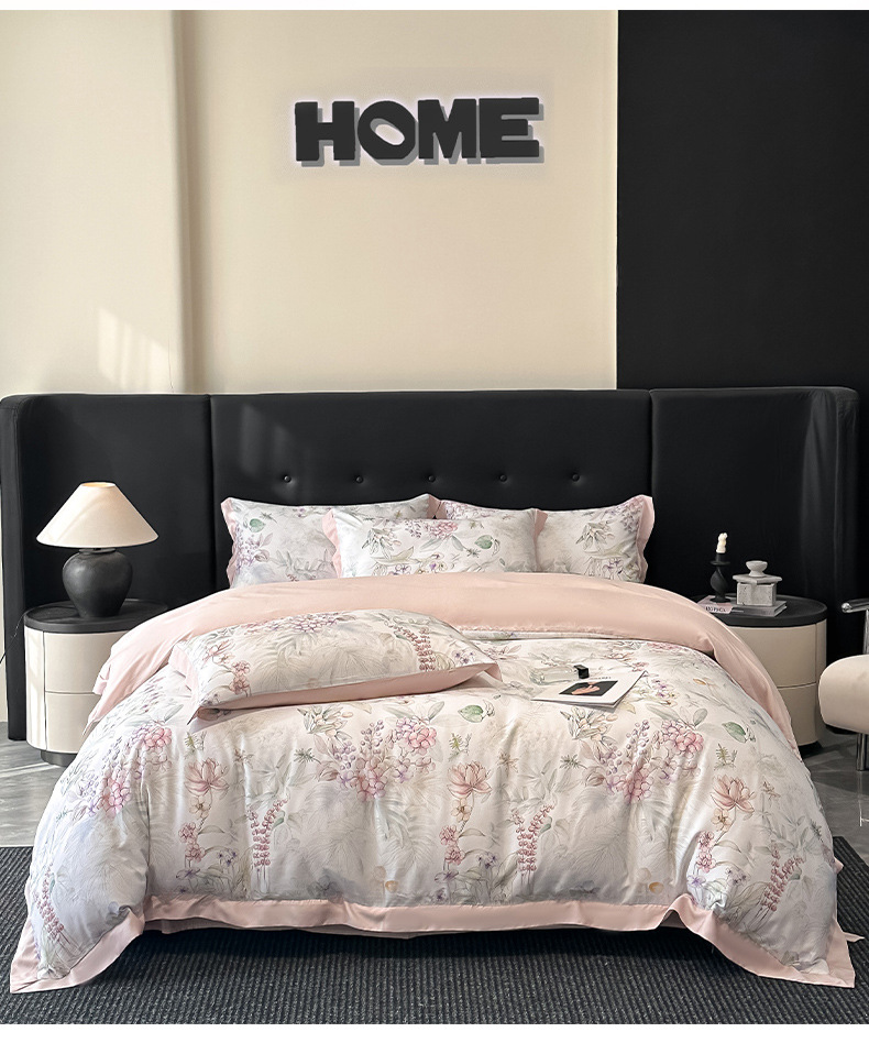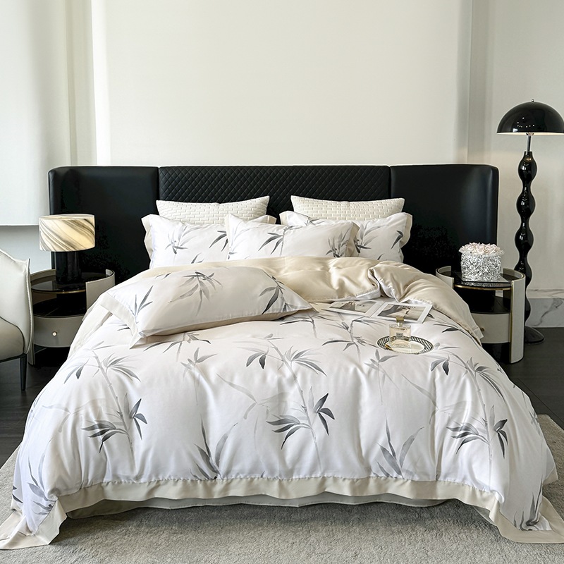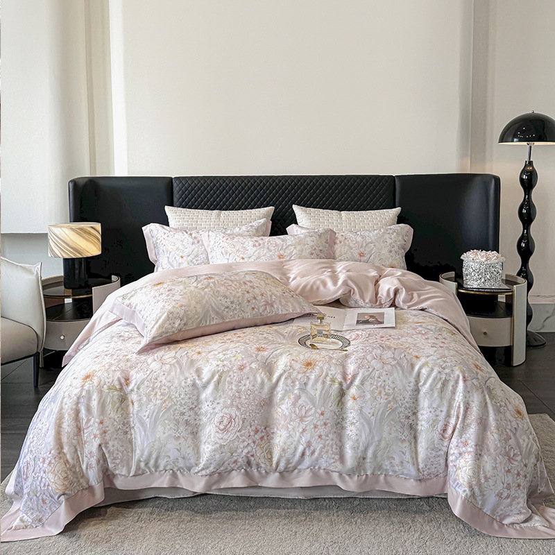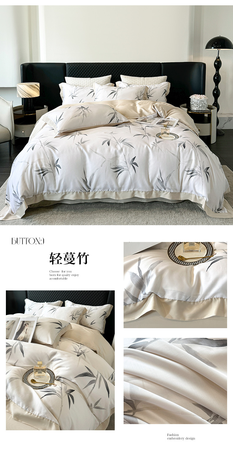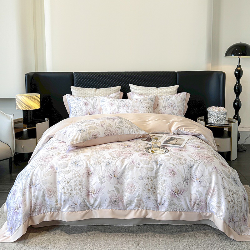 莱赛尔凉爽印花宽边天丝四件套裸睡夏季轻奢床单被套床上用品