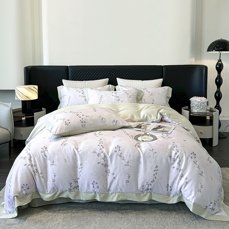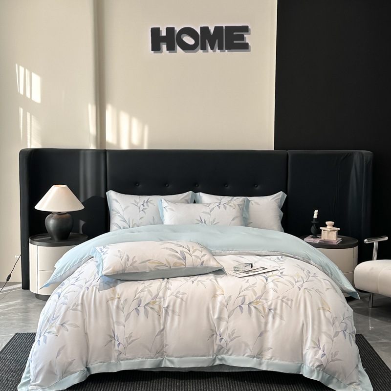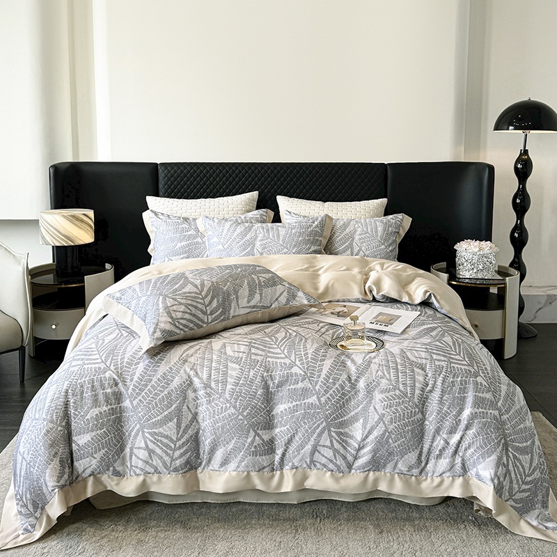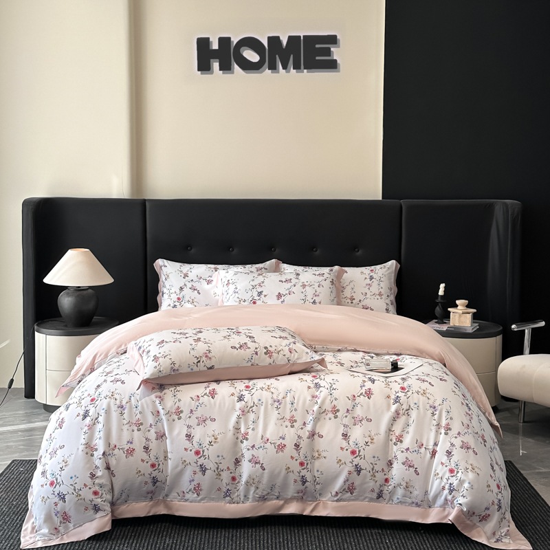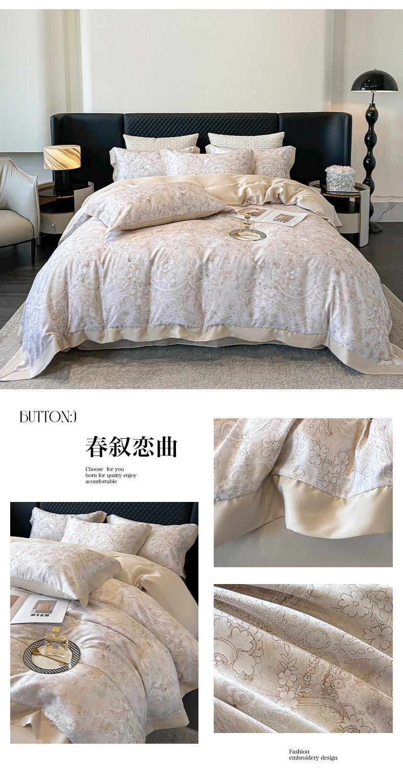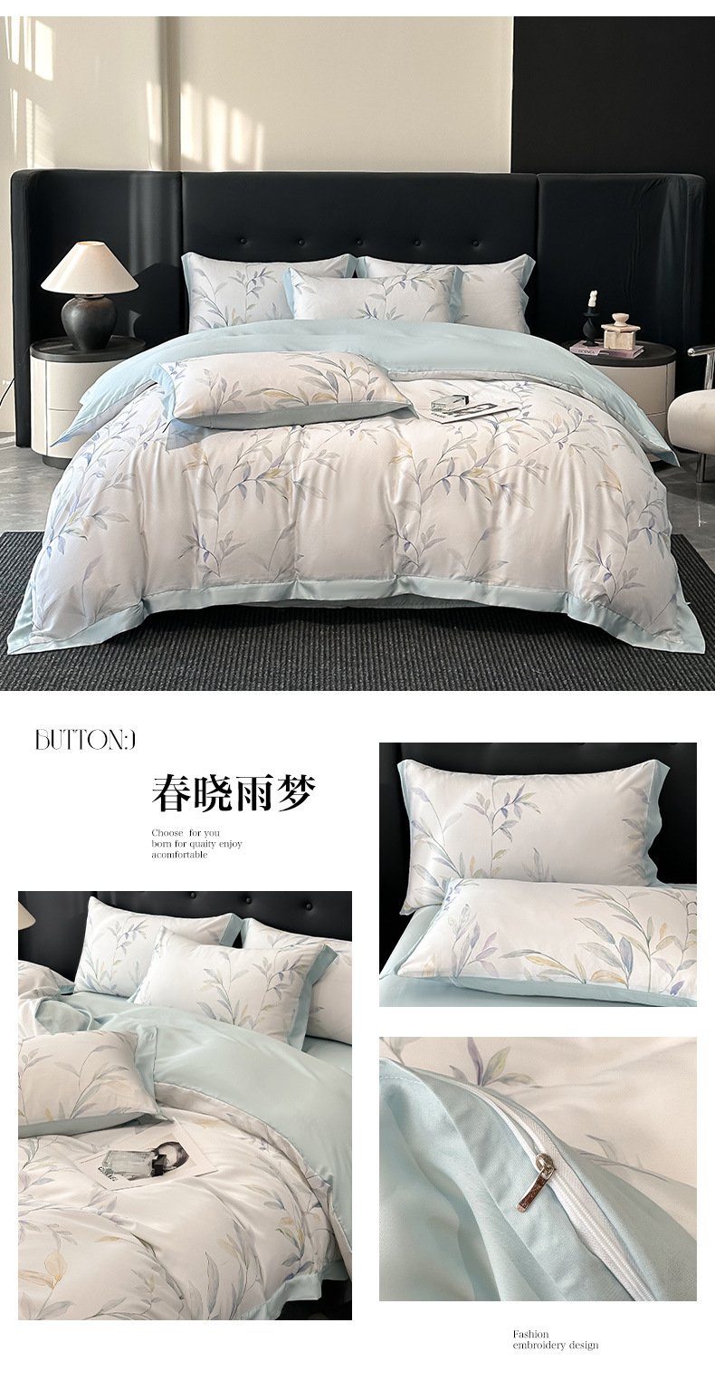 莱赛尔凉爽印花宽边天丝四件套裸睡夏季轻奢床单被套床上用品