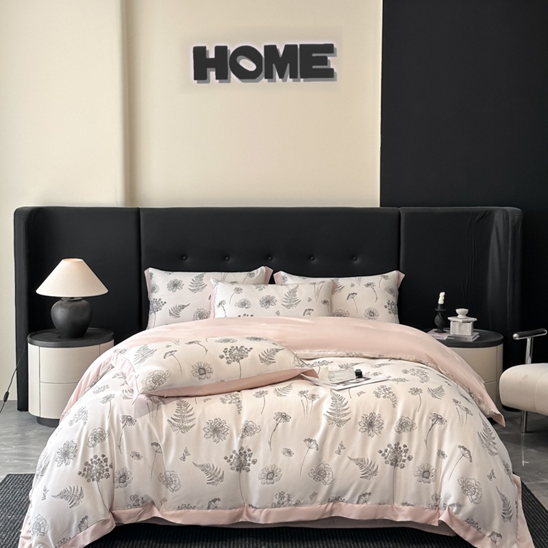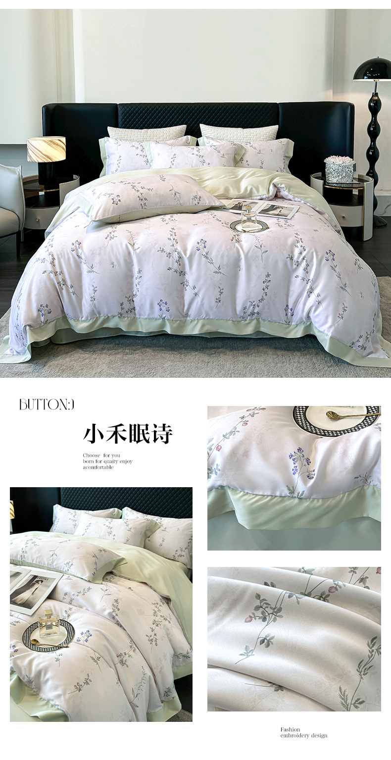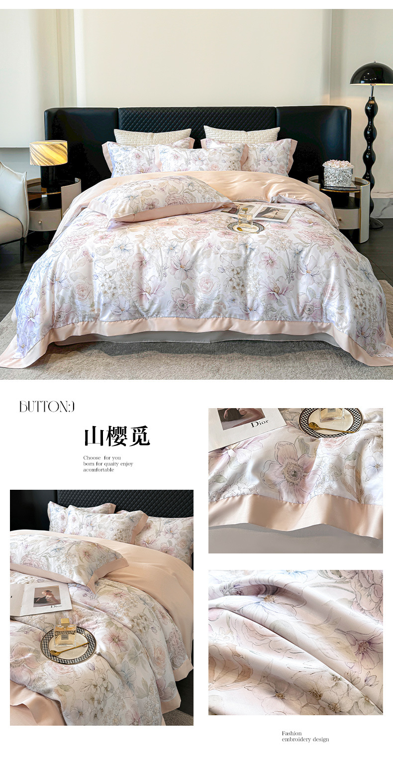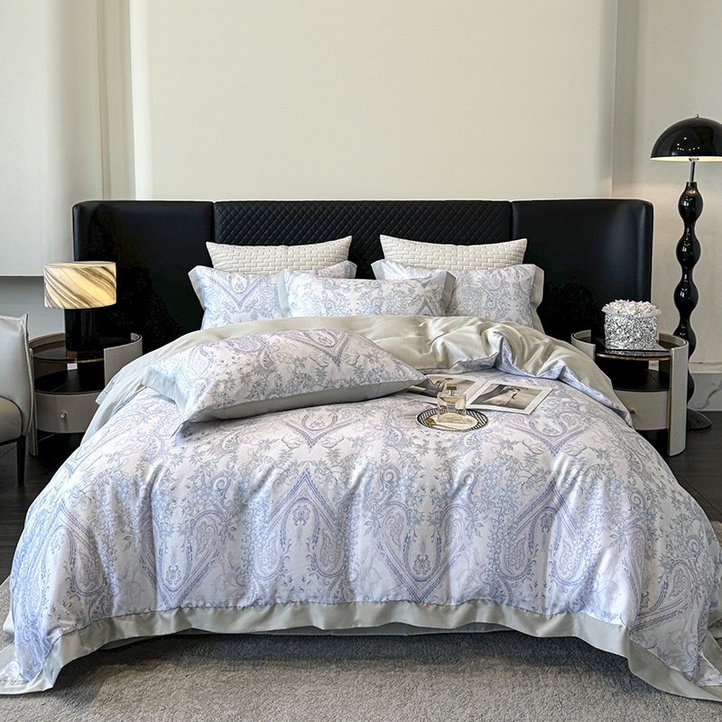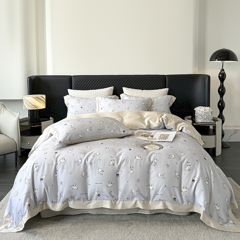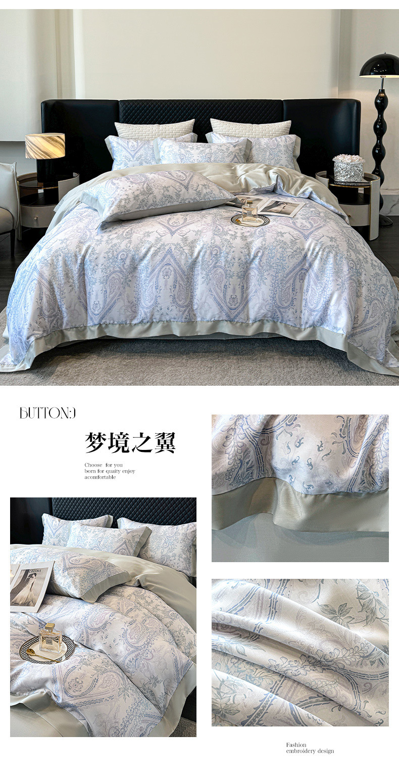 莱赛尔凉爽印花宽边天丝四件套裸睡夏季轻奢床单被套床上用品