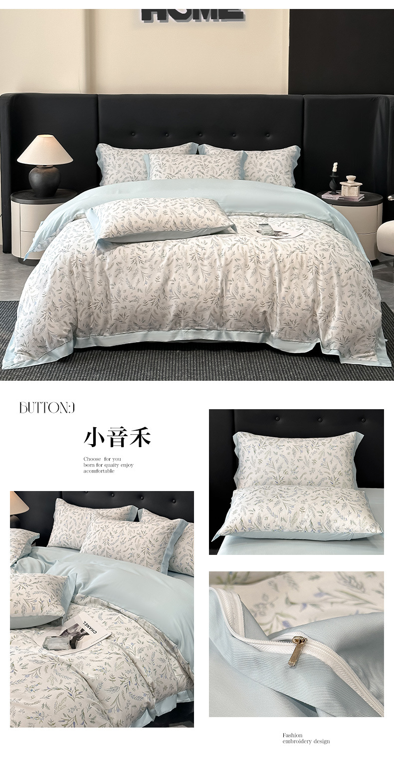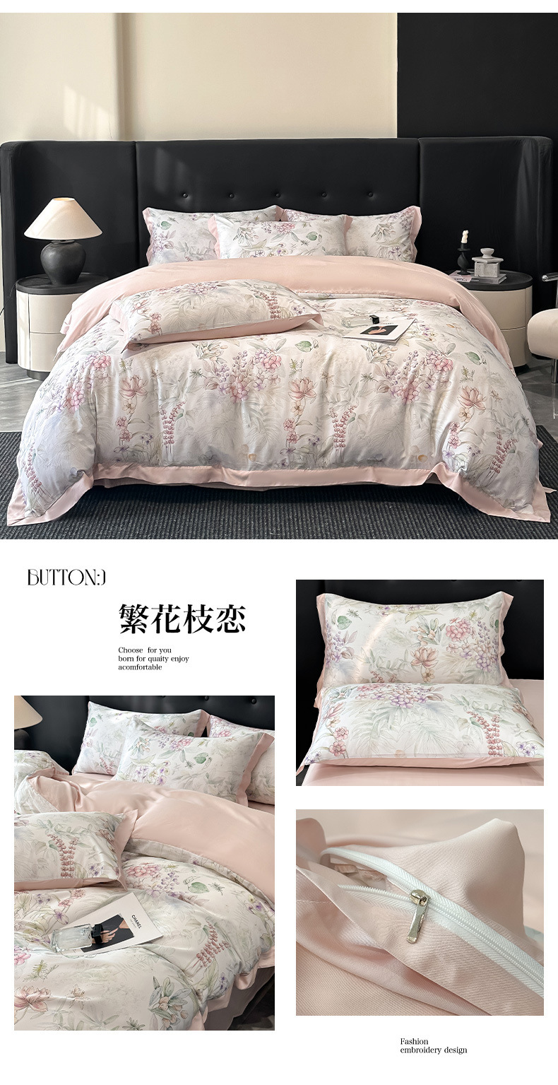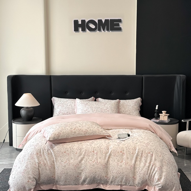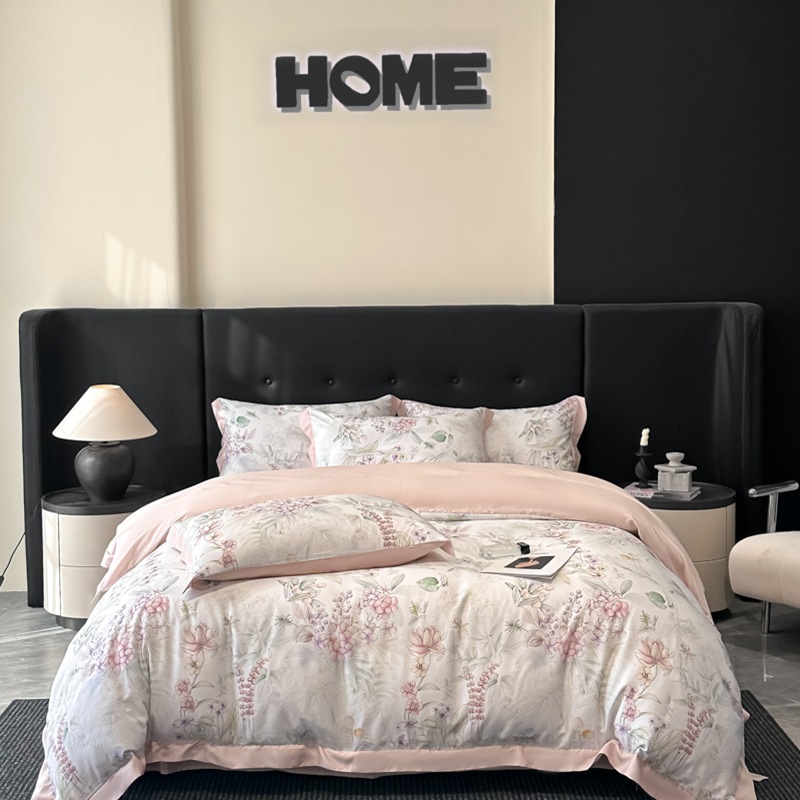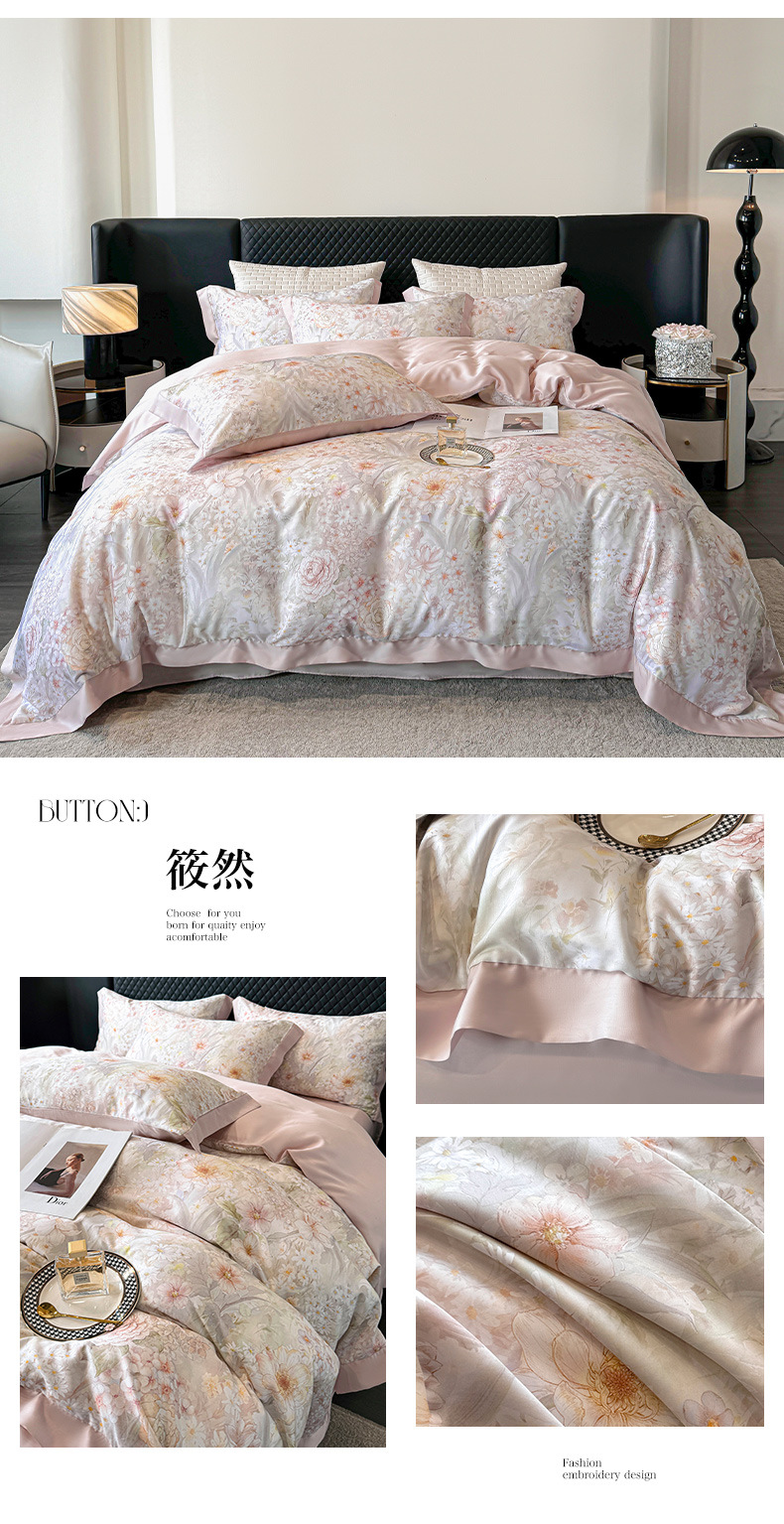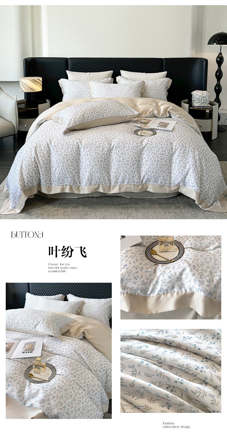 莱赛尔凉爽印花宽边天丝四件套裸睡夏季轻奢床单被套床上用品