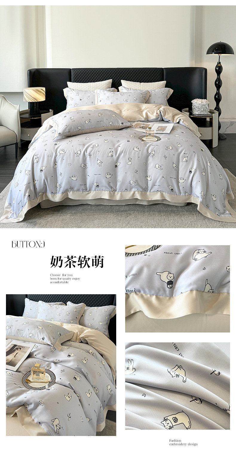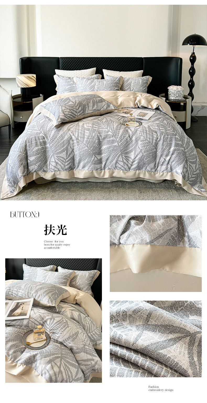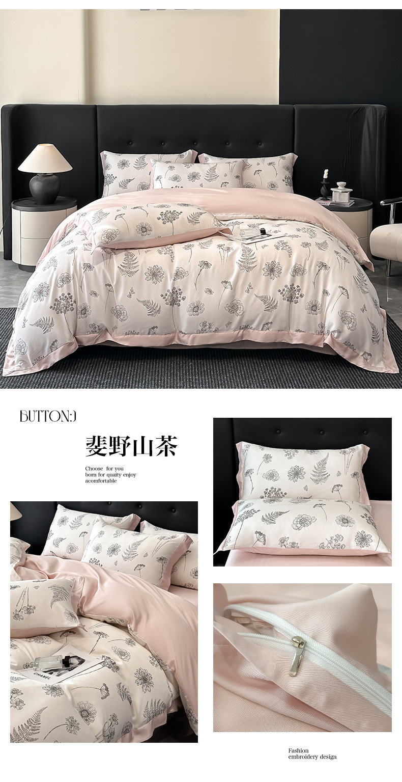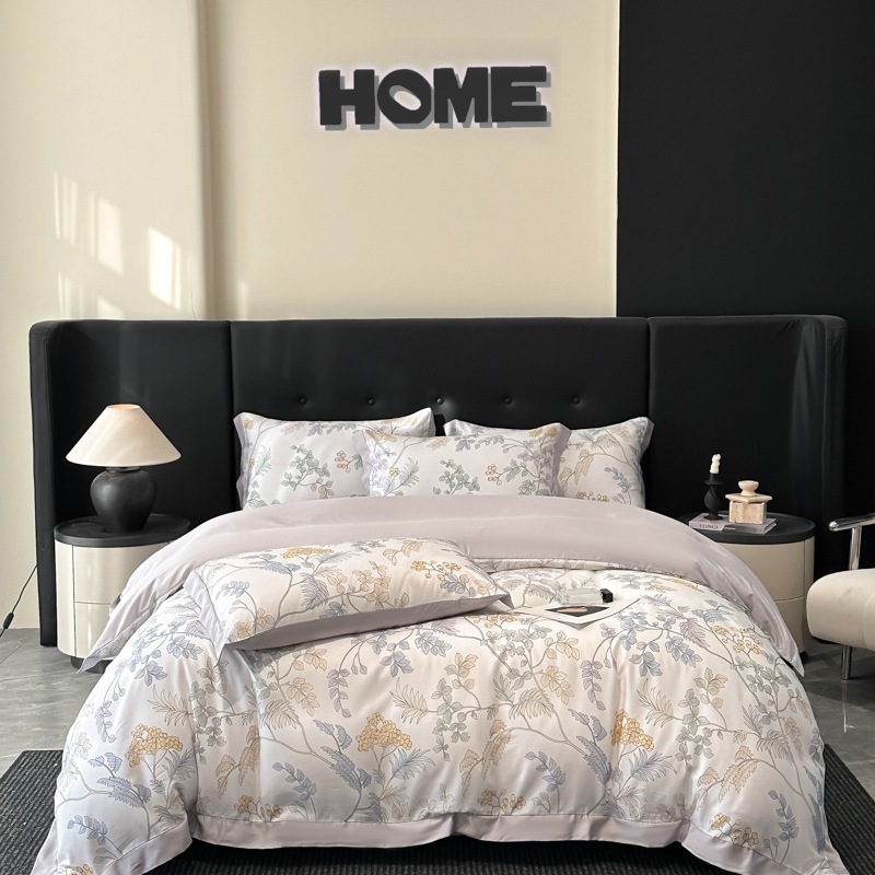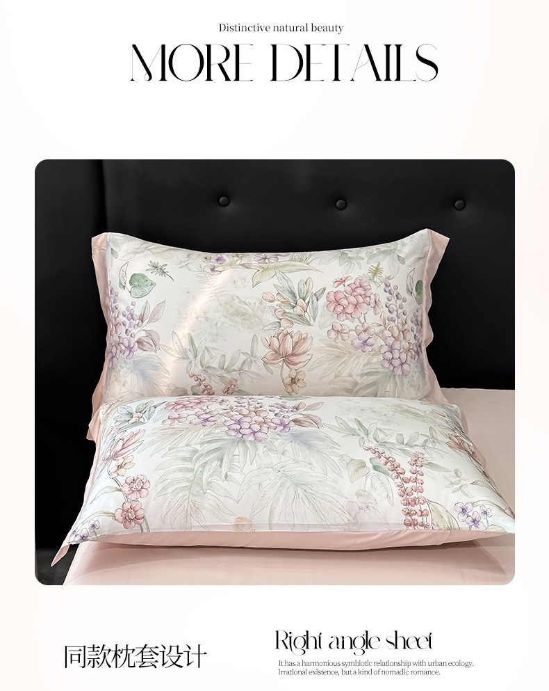 莱赛尔凉爽印花宽边天丝四件套裸睡夏季轻奢床单被套床上用品