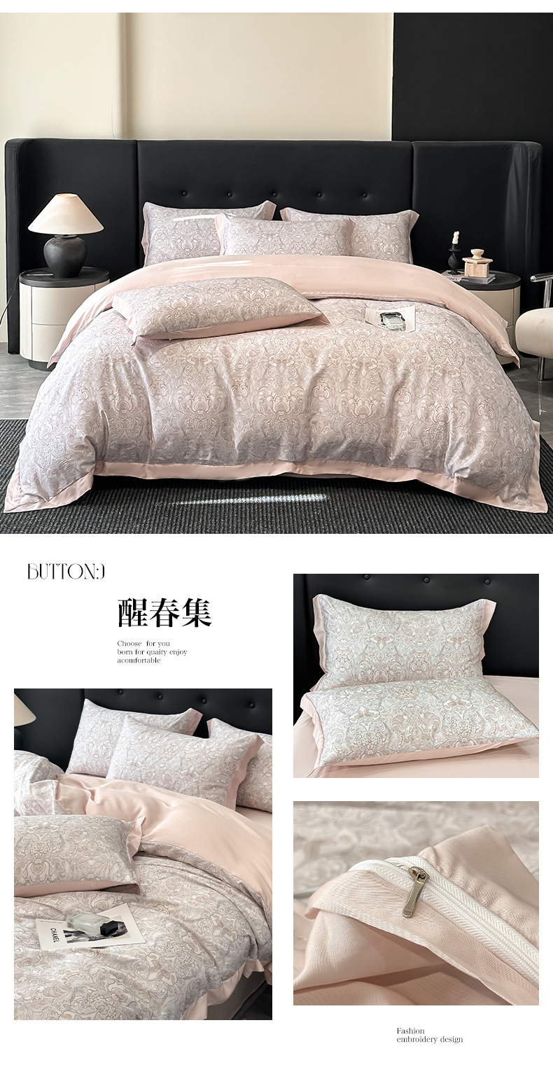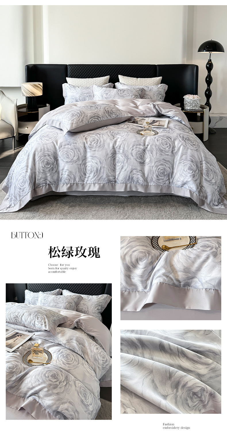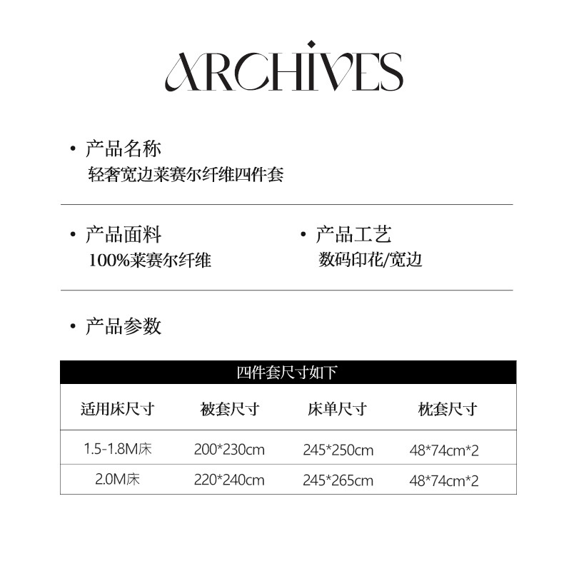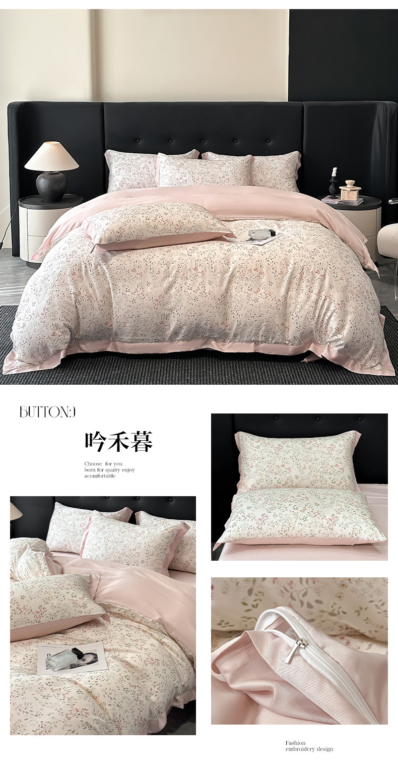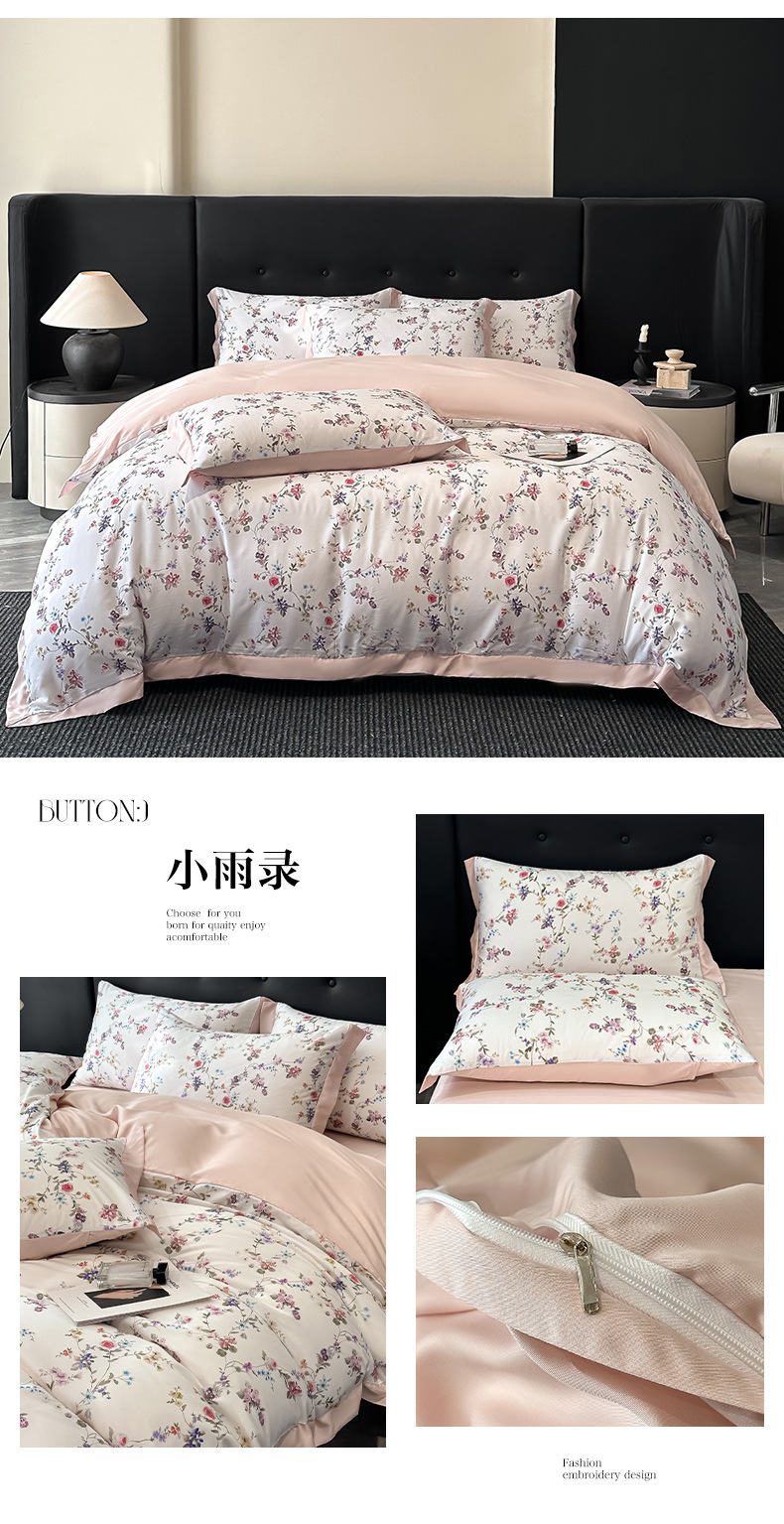 莱赛尔凉爽印花宽边天丝四件套裸睡夏季轻奢床单被套床上用品