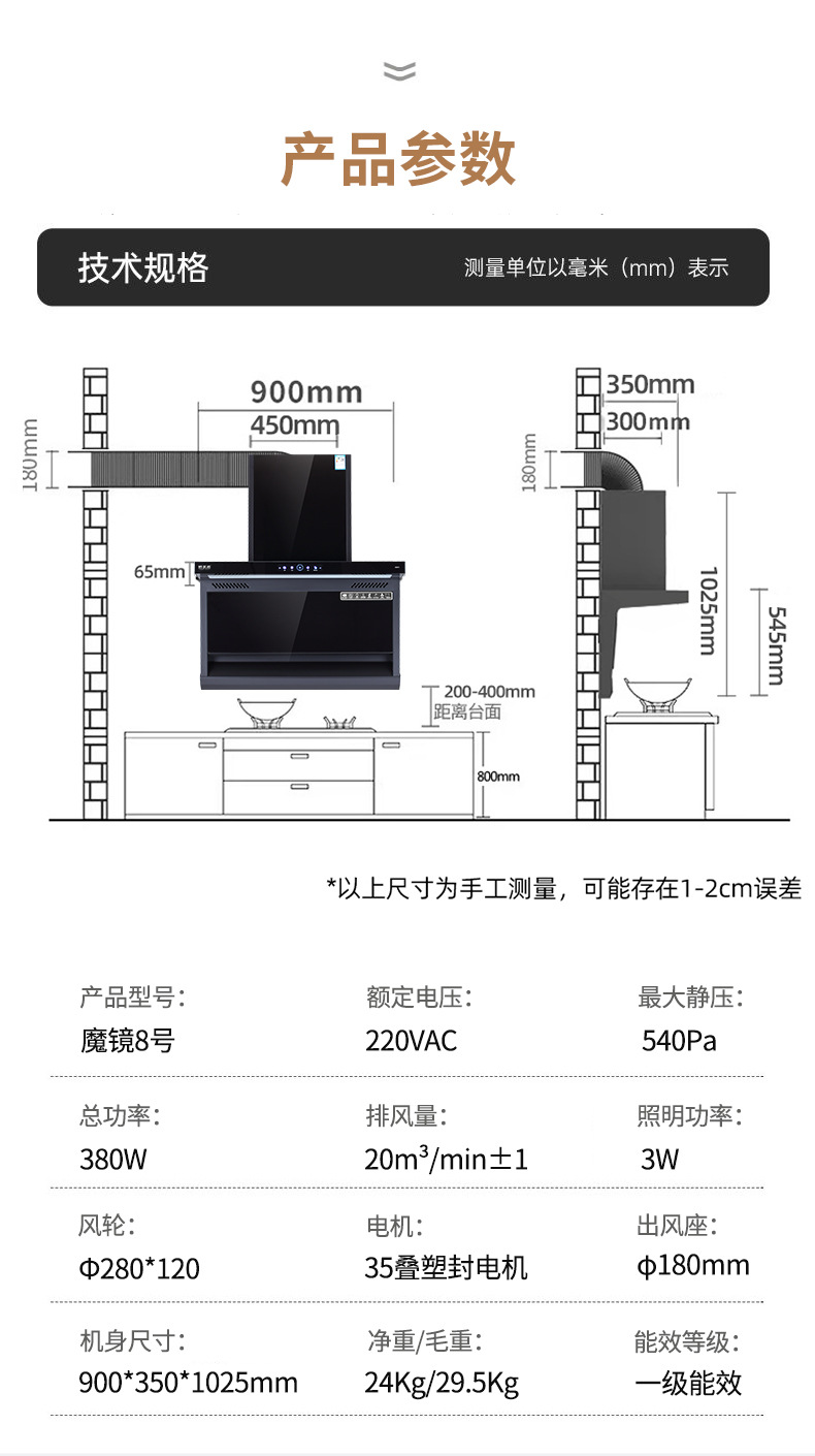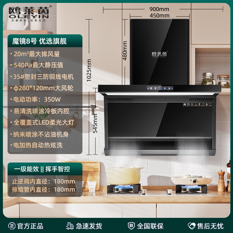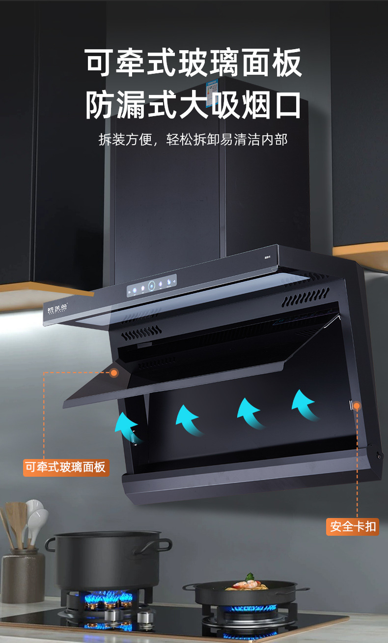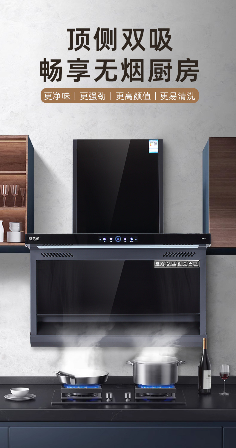 kitchen ventilator household large suction kitchen appliances european-style side-suction type 7-shaped automatic cleaning kitchen ventilator
