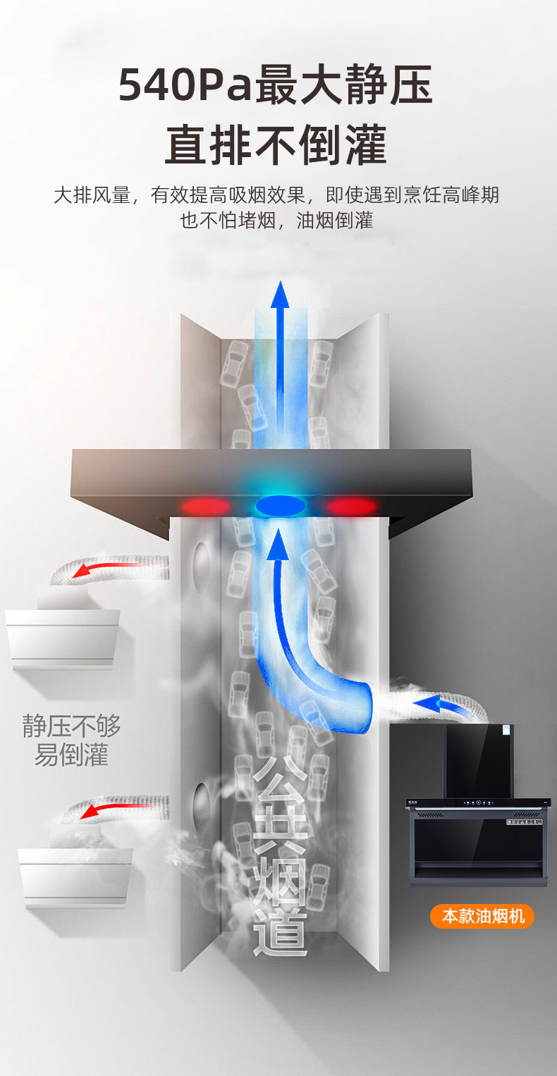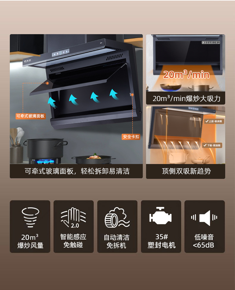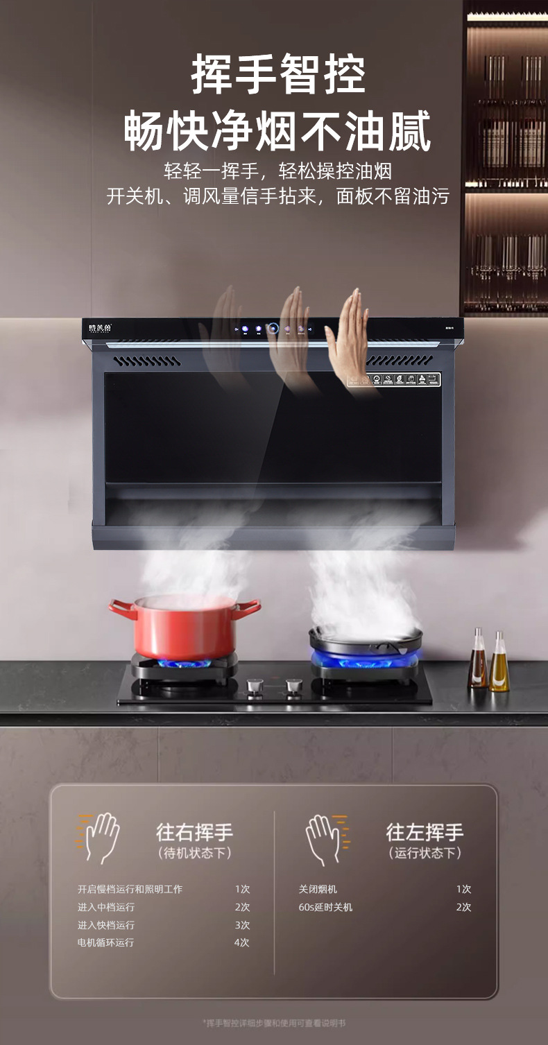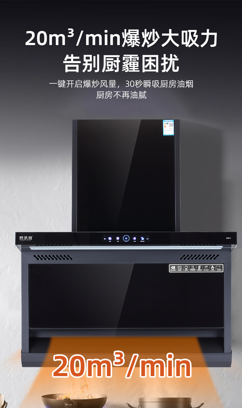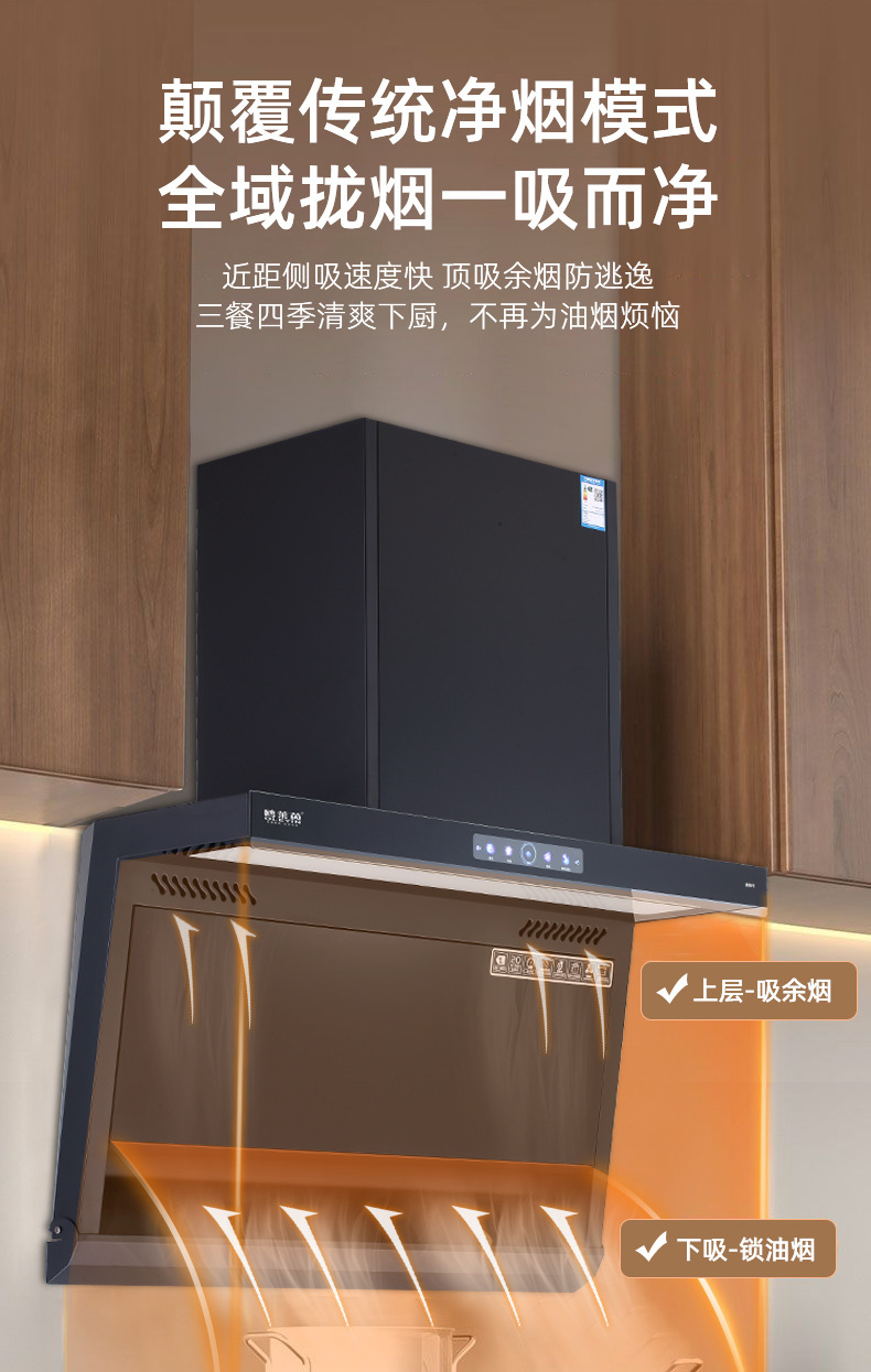 抽油烟机 家用大吸力厨房电器欧式侧吸式7字型体感自动清洗油烟机