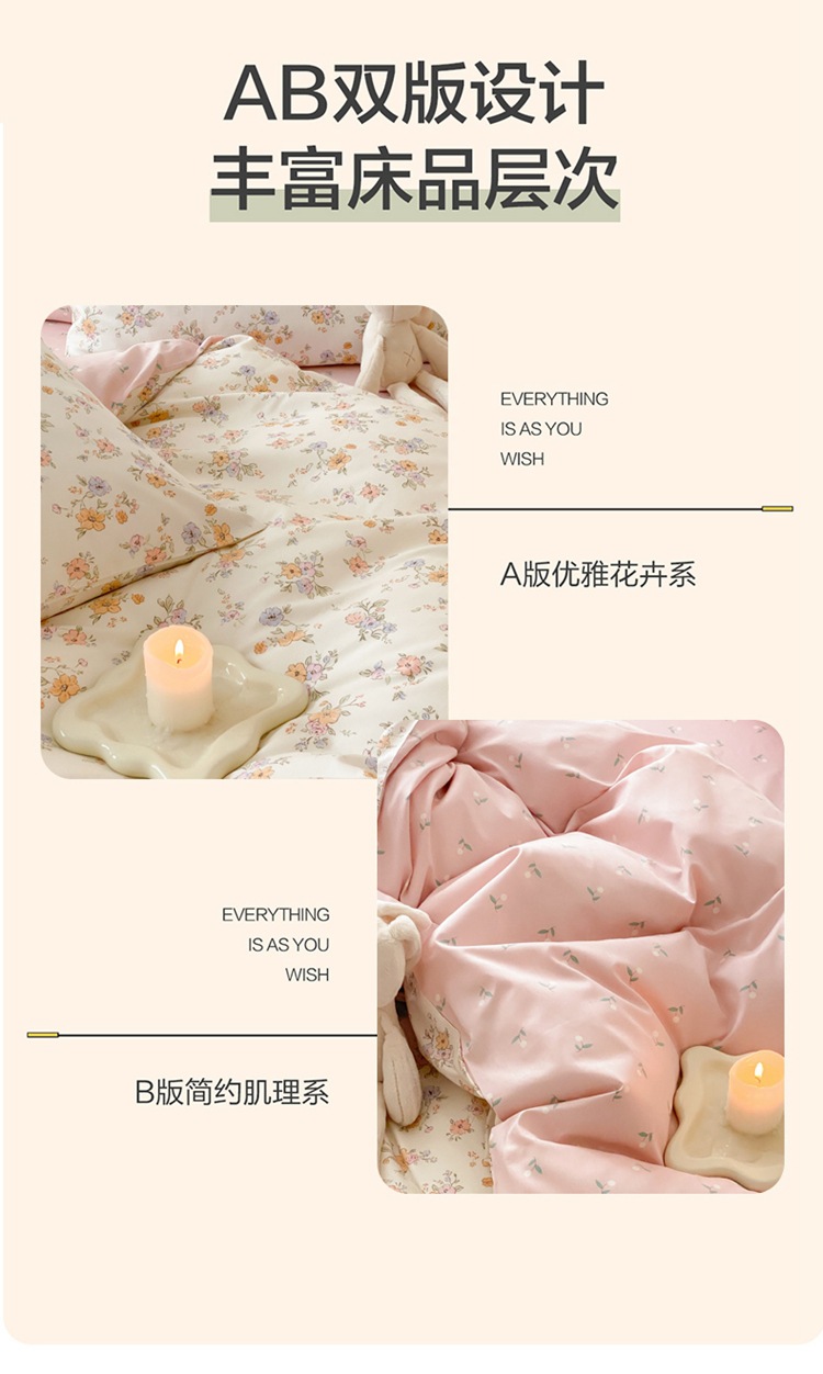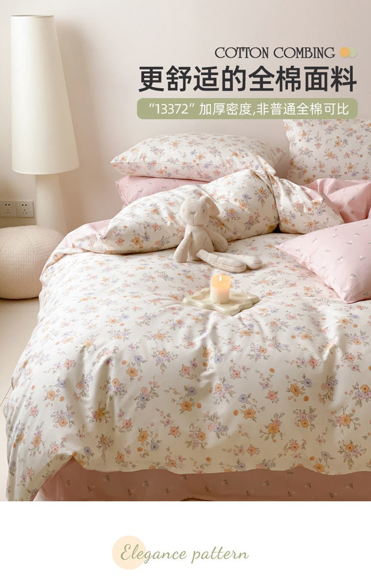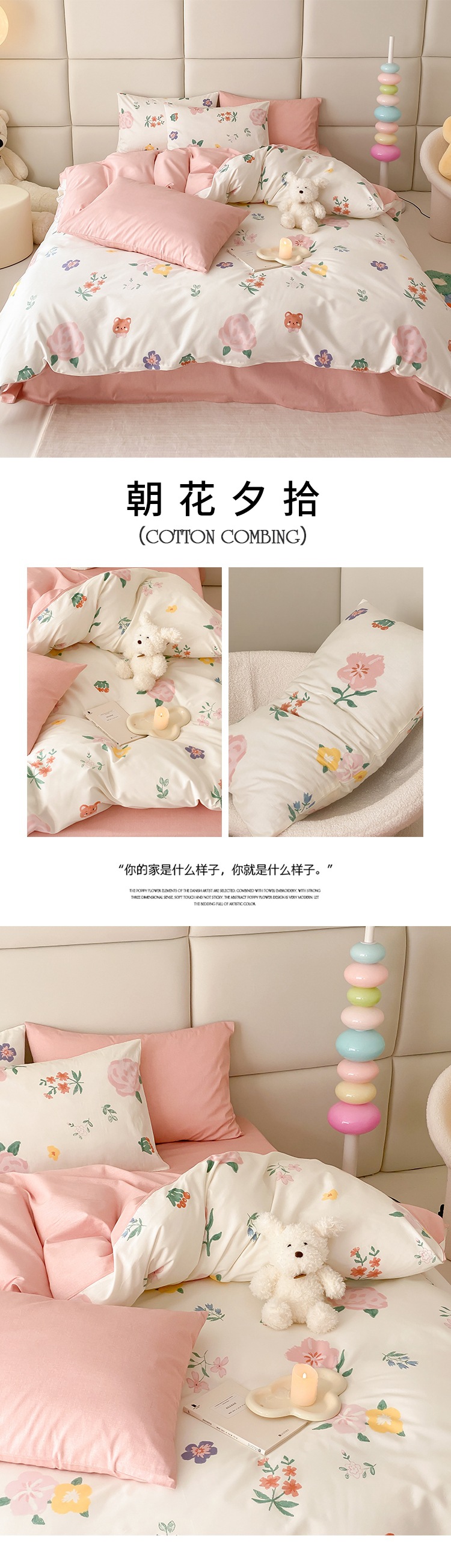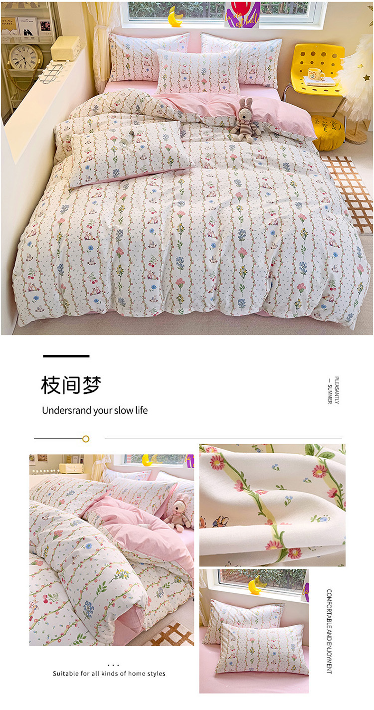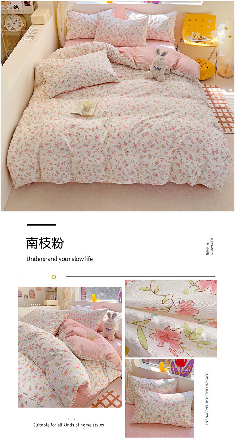 ins风小清新全棉四件套100纯棉床单被套宿舍三件套仙女床品床笠款