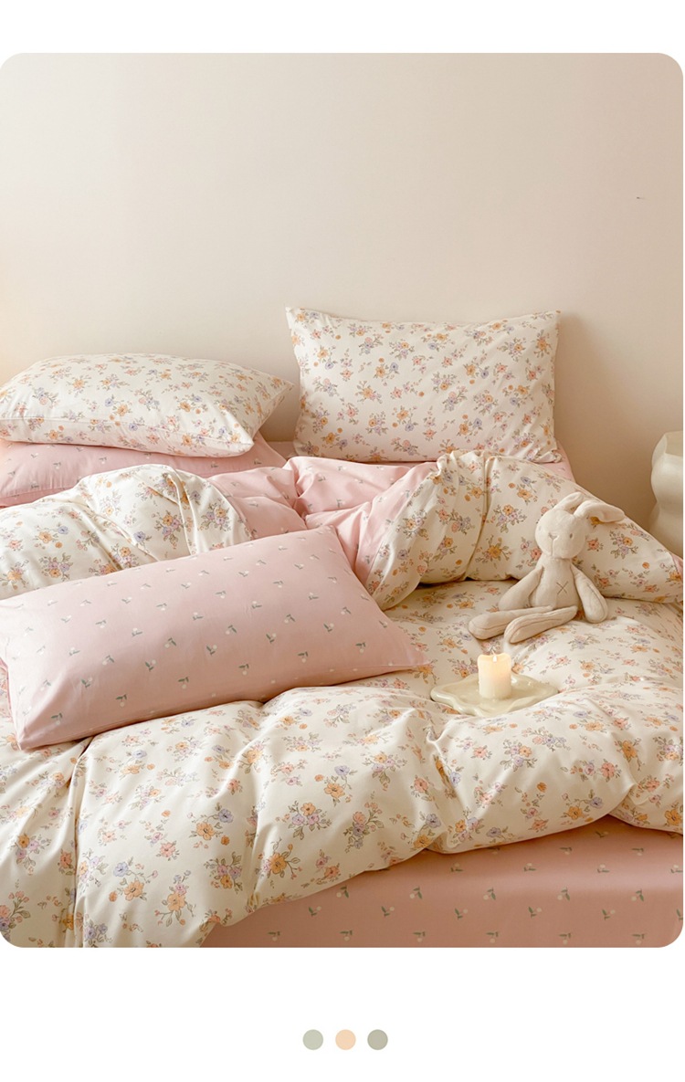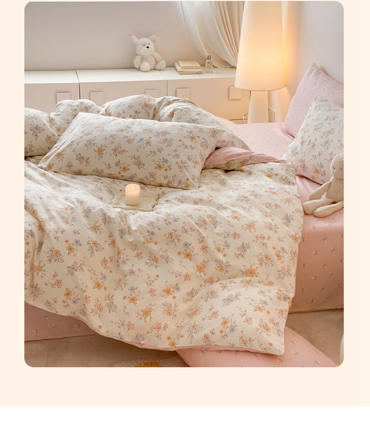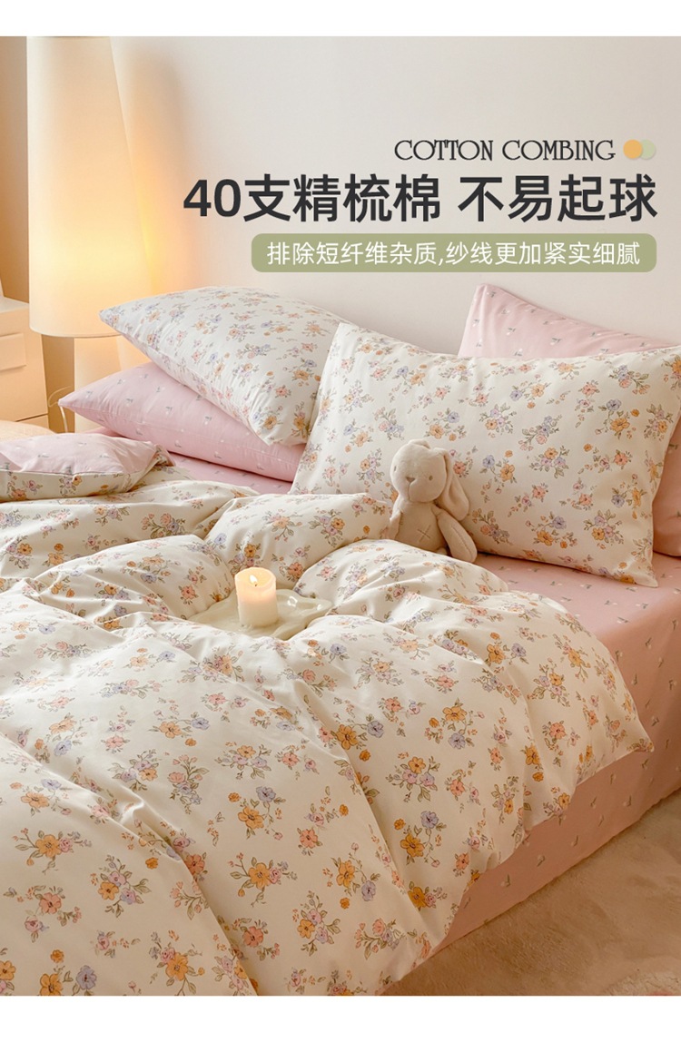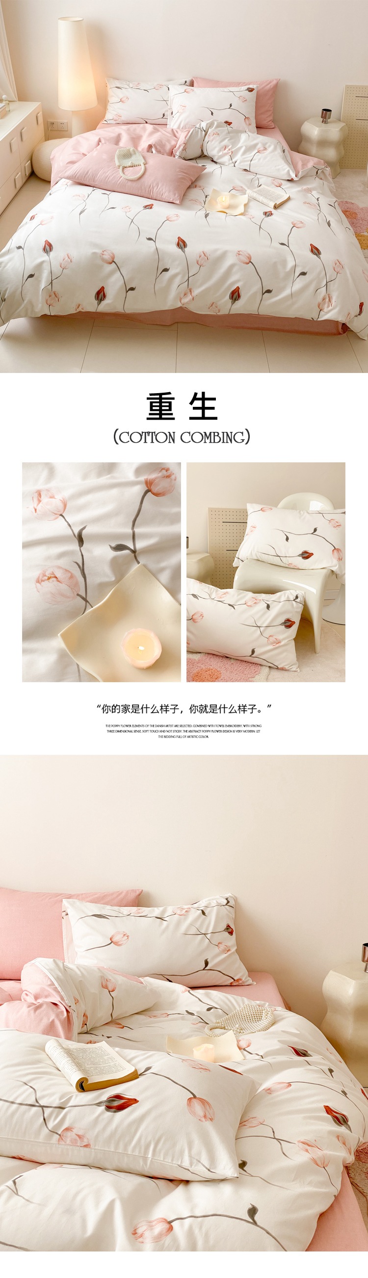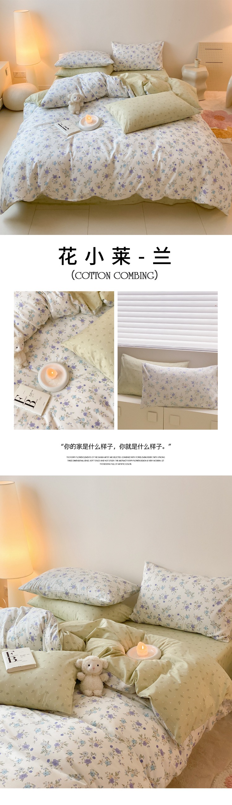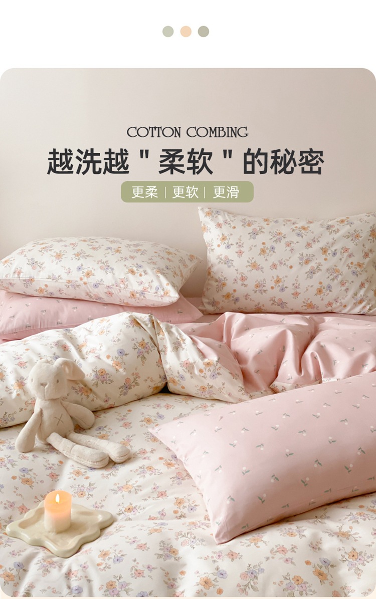 ins风小清新全棉四件套100纯棉床单被套宿舍三件套仙女床品床笠款
