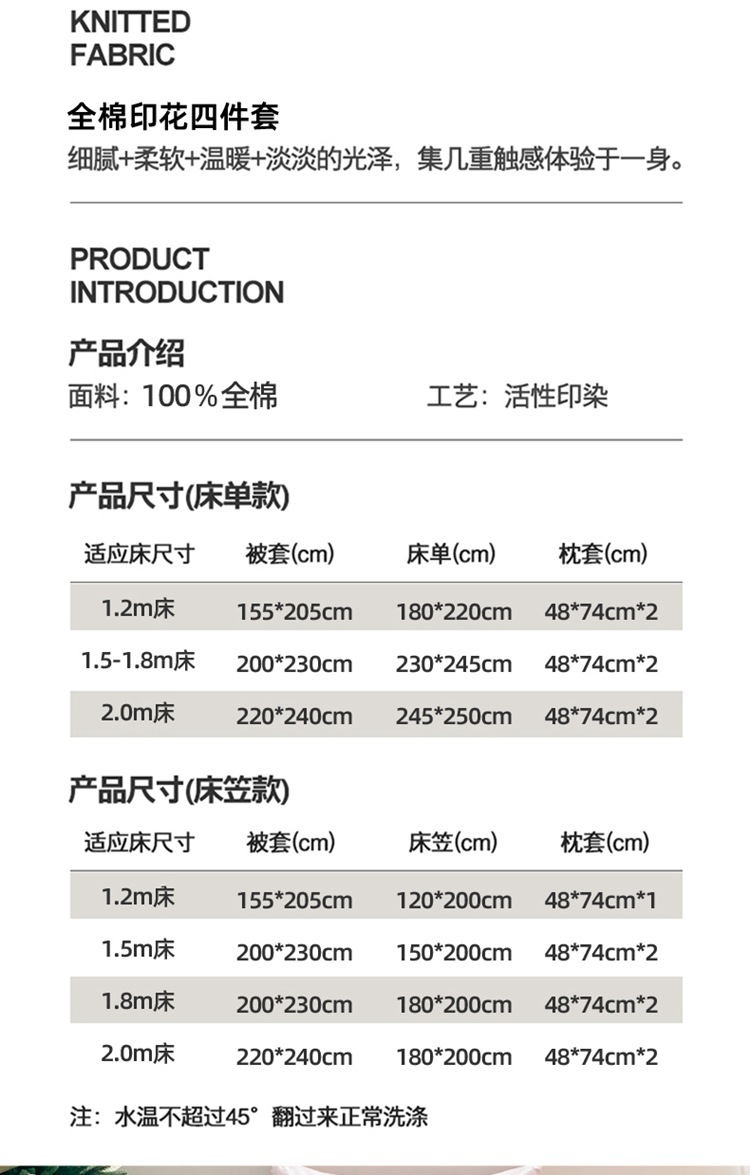 | 1.2m fitted sheet [applicable 150*200 quilt]](1.2m床笠款【适用150*200被子】) | USD $25.0 | 0 set available |