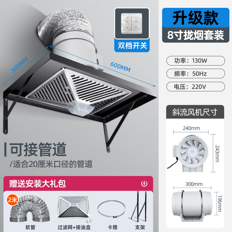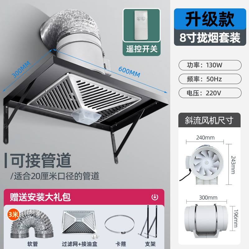 斜流增压油烟机换气扇抽油烟排气扇强力家用厨房排烟机出租房抽烟