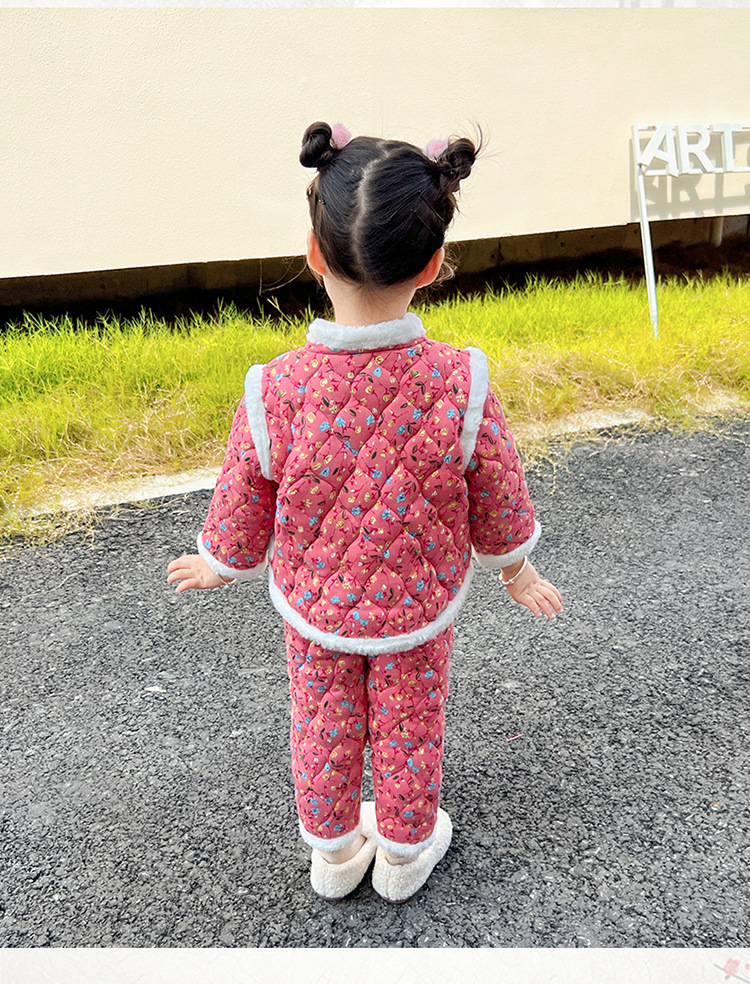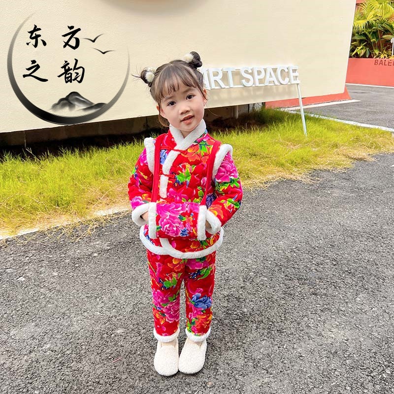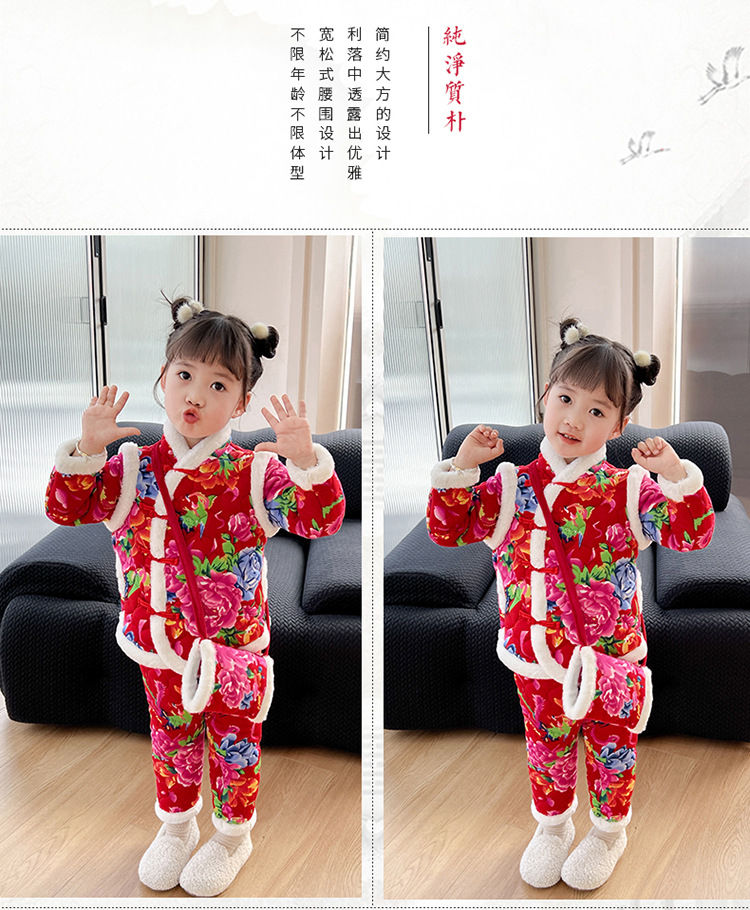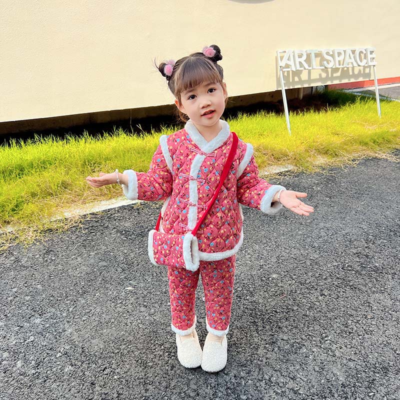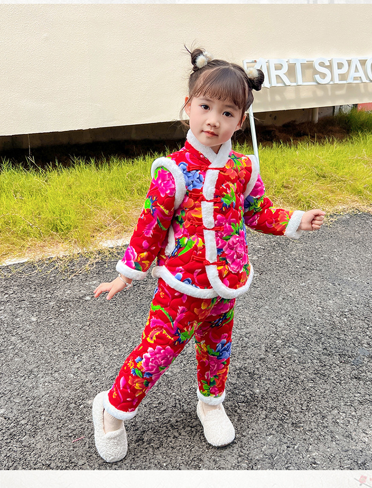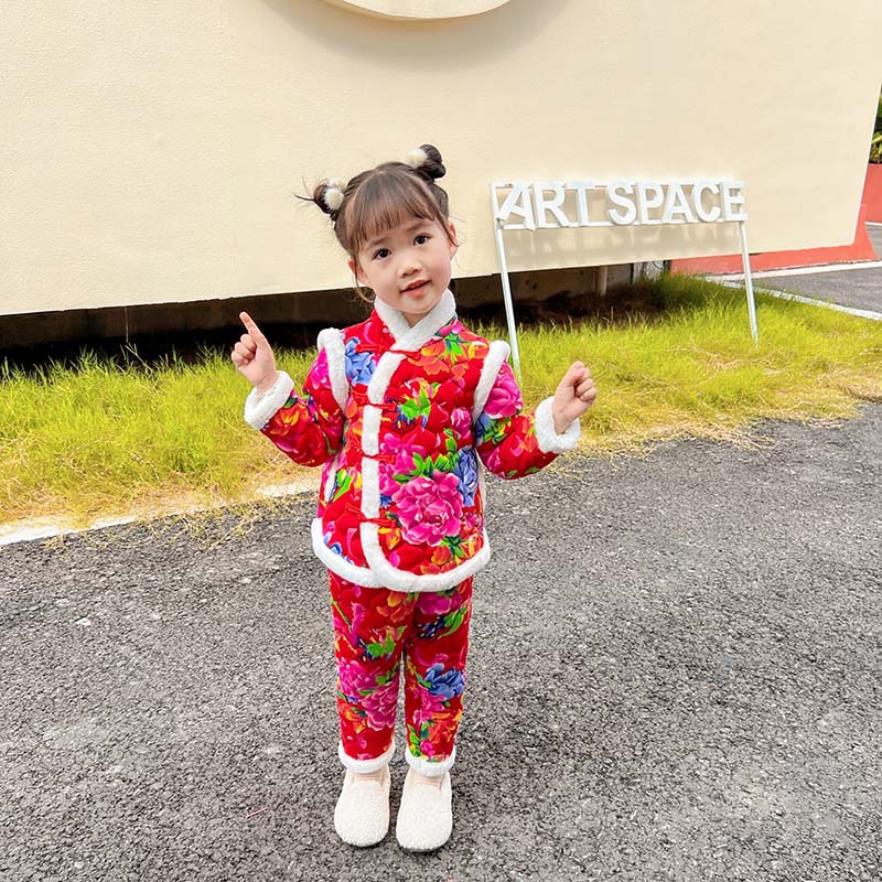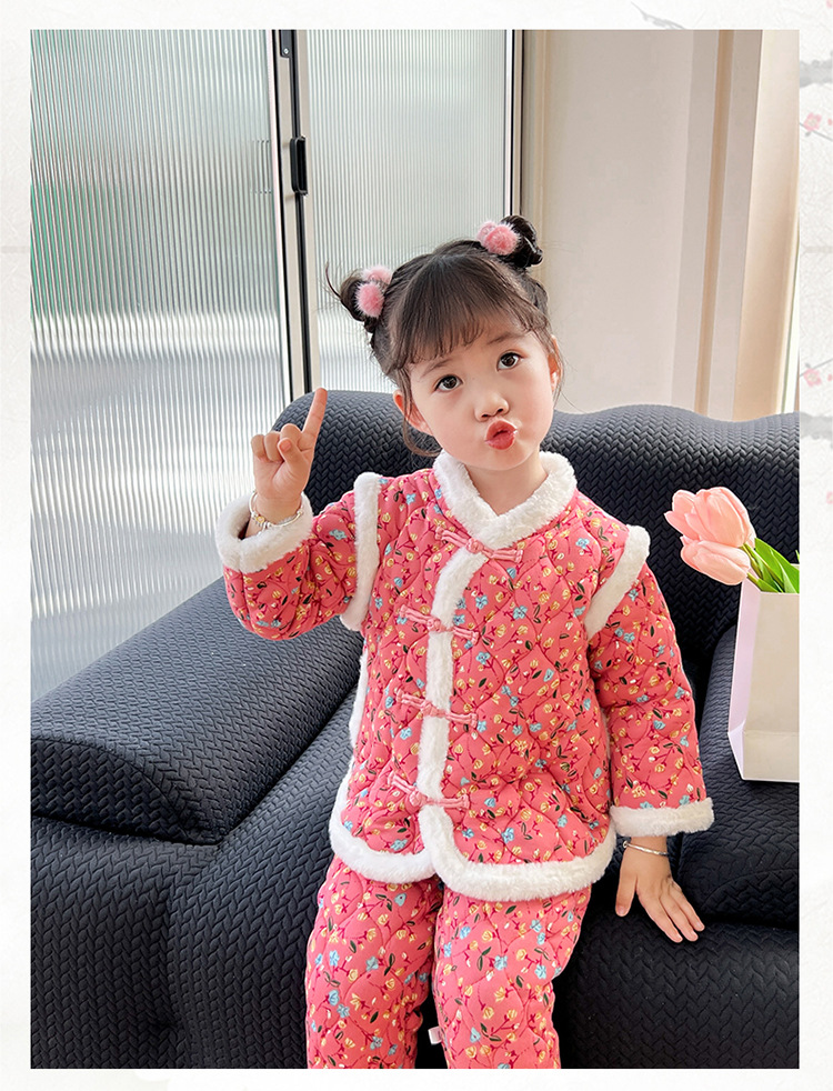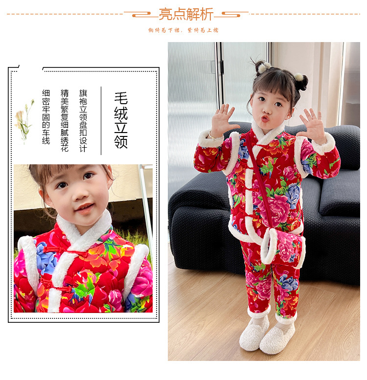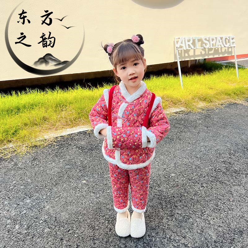 中国风儿童装棉服套装夹棉加厚网红大花棉衣棉袄保暖宝宝拜年服厚