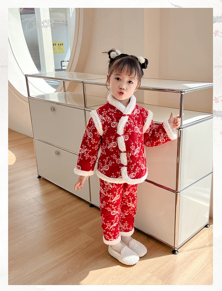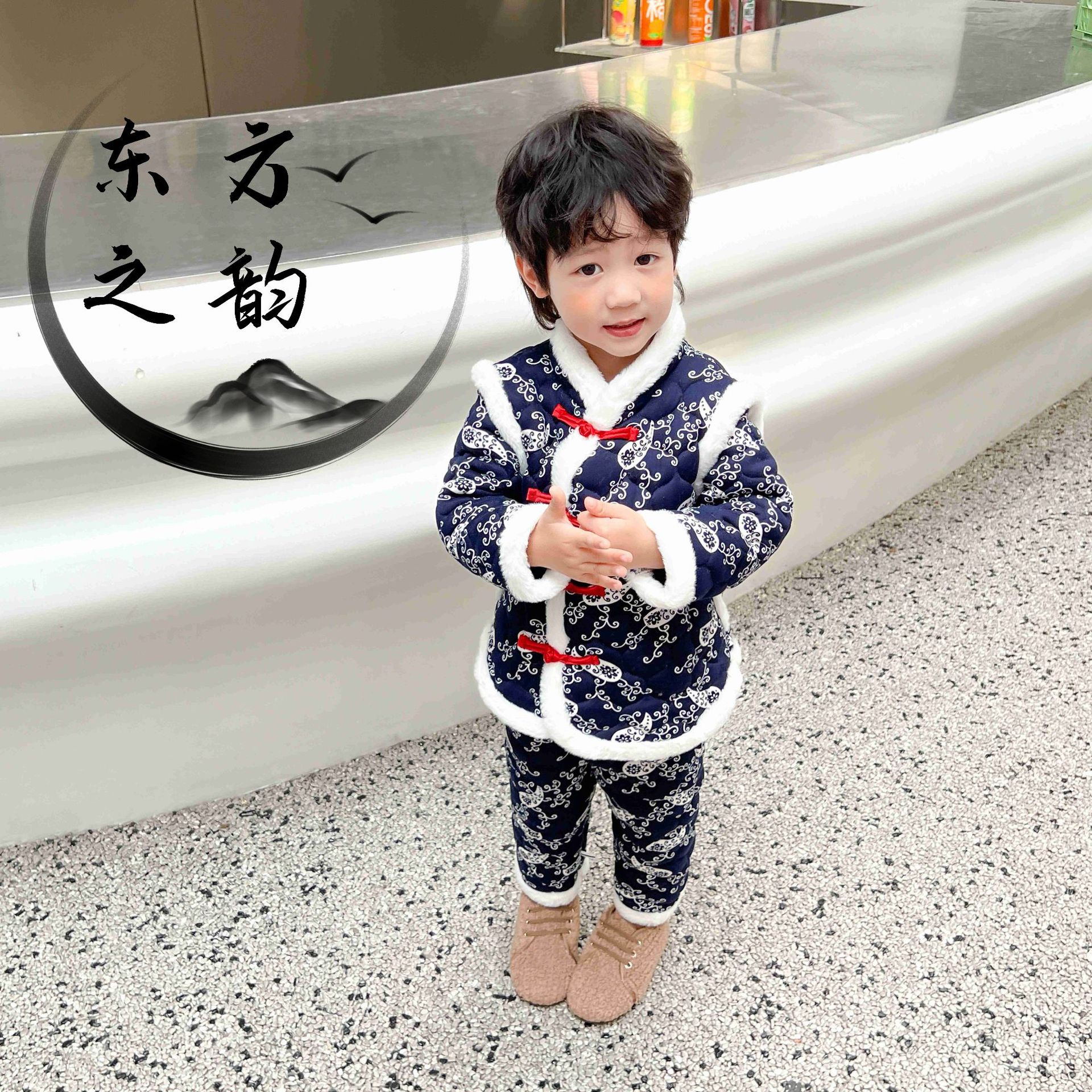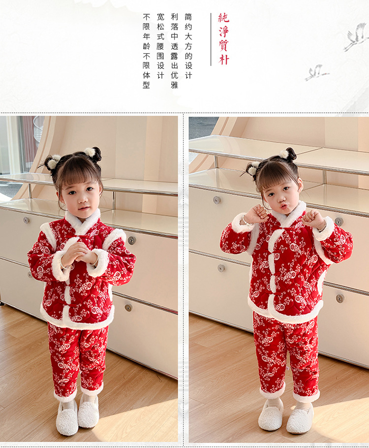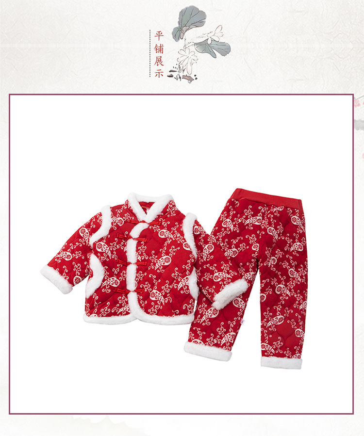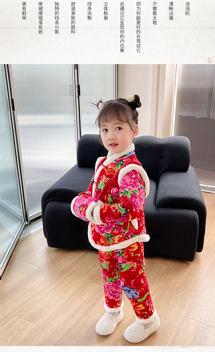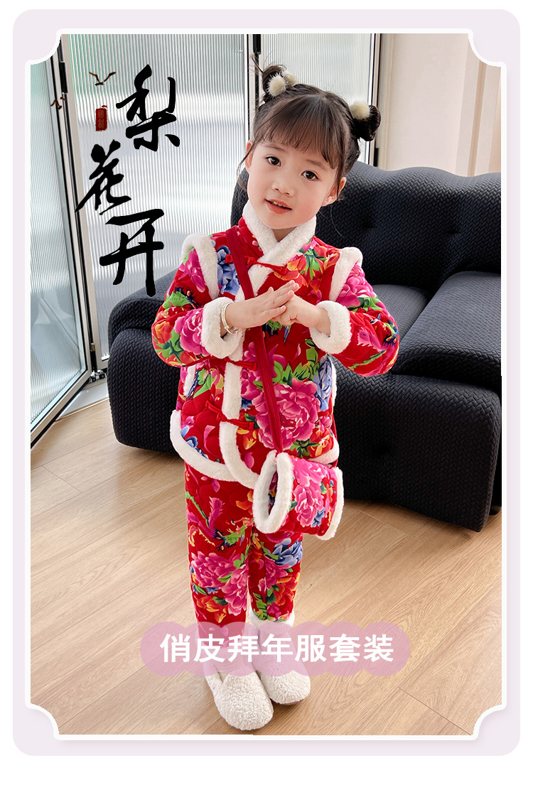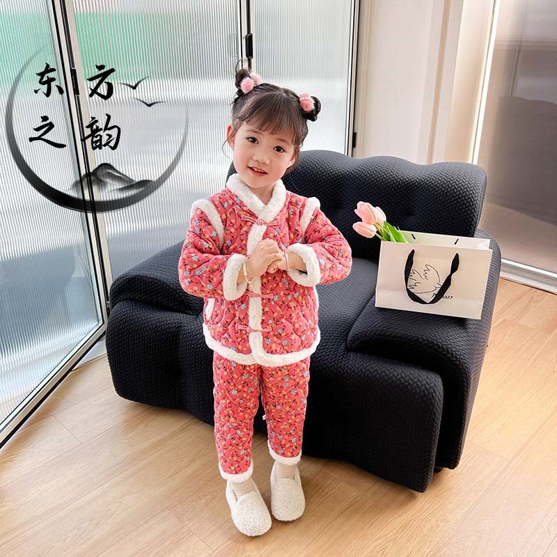 中国风儿童装棉服套装夹棉加厚网红大花棉衣棉袄保暖宝宝拜年服厚