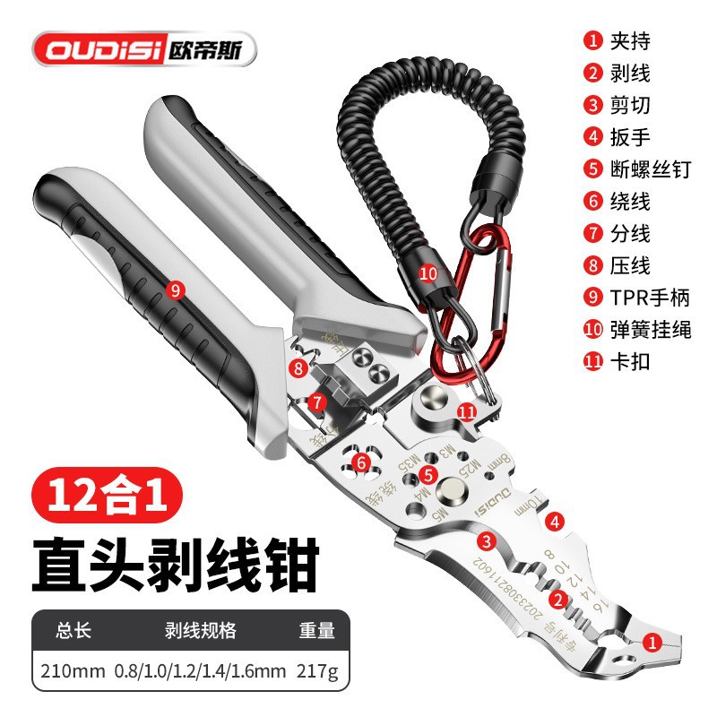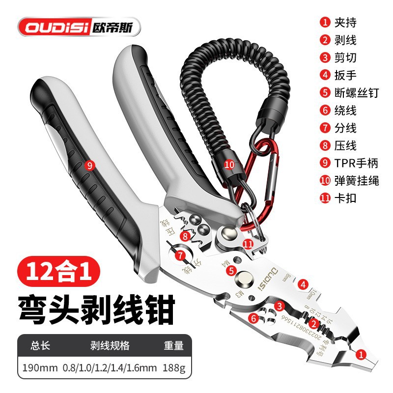 欧帝斯多功能电工专用剥线钳剥线分线钳绕线剪线剥线皮压线剥线钳