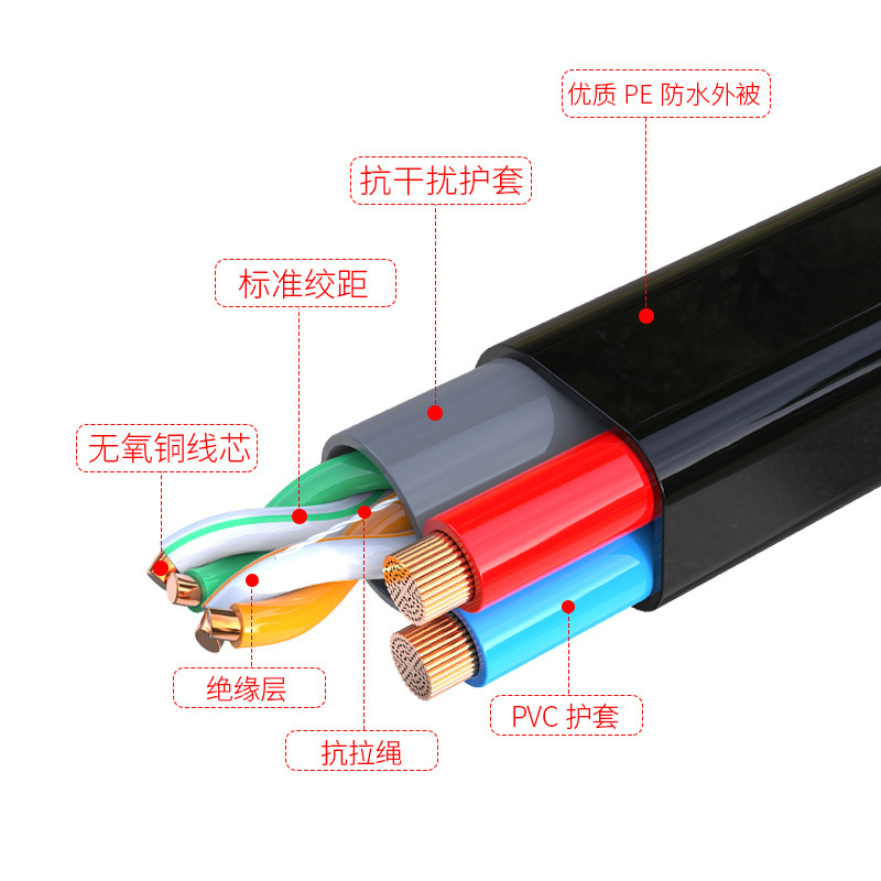 oxygen-free copper four-core eight-core network cable with power supply integrated cable outdoor network monitor cable composite line recombination line