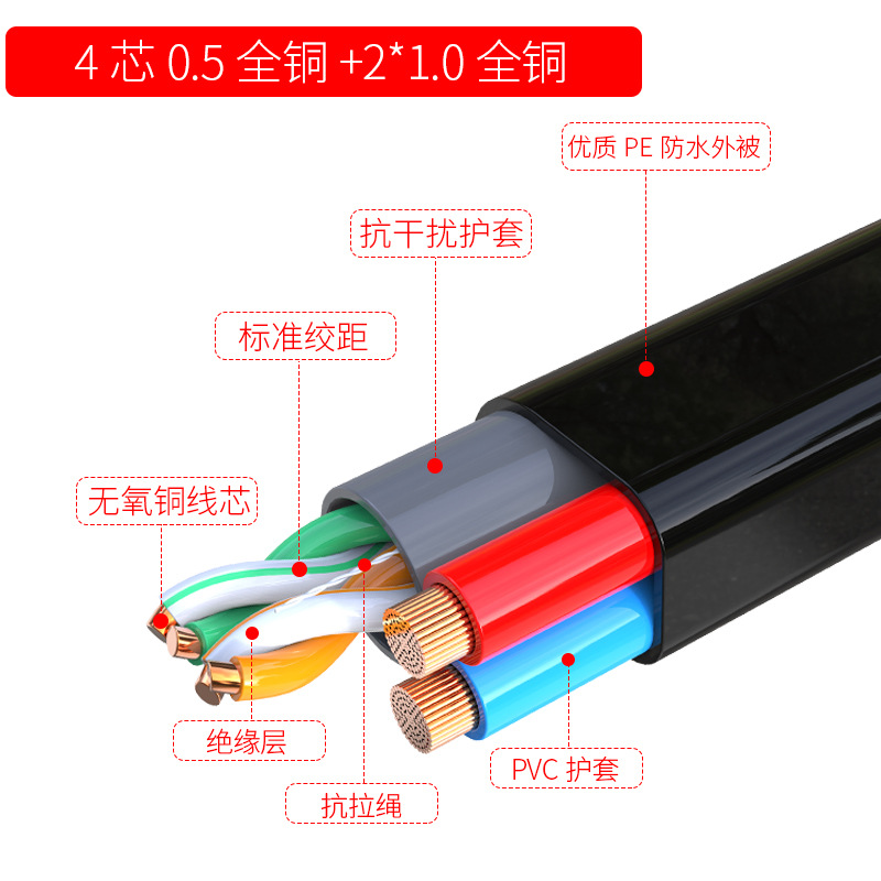4x0.5 oxygen-free copper +2*1.0 oxygen-free copper 100 m(4x0.5无氧铜+2*1.0无氧铜 100米) USD $30.61 993 volume available