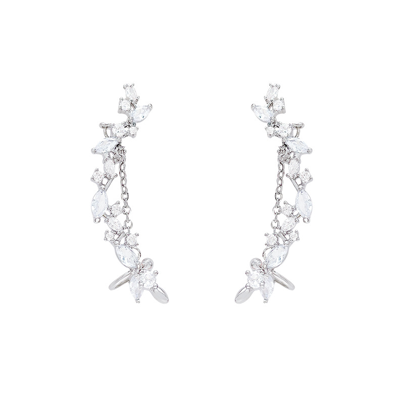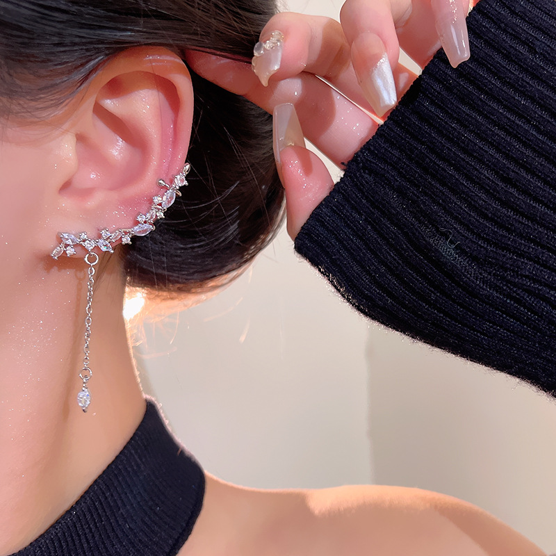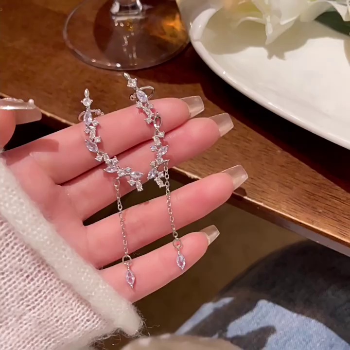 饰品超闪精致锆石耳钉网红同款耳饰小众高级感长款流苏花朵耳环女