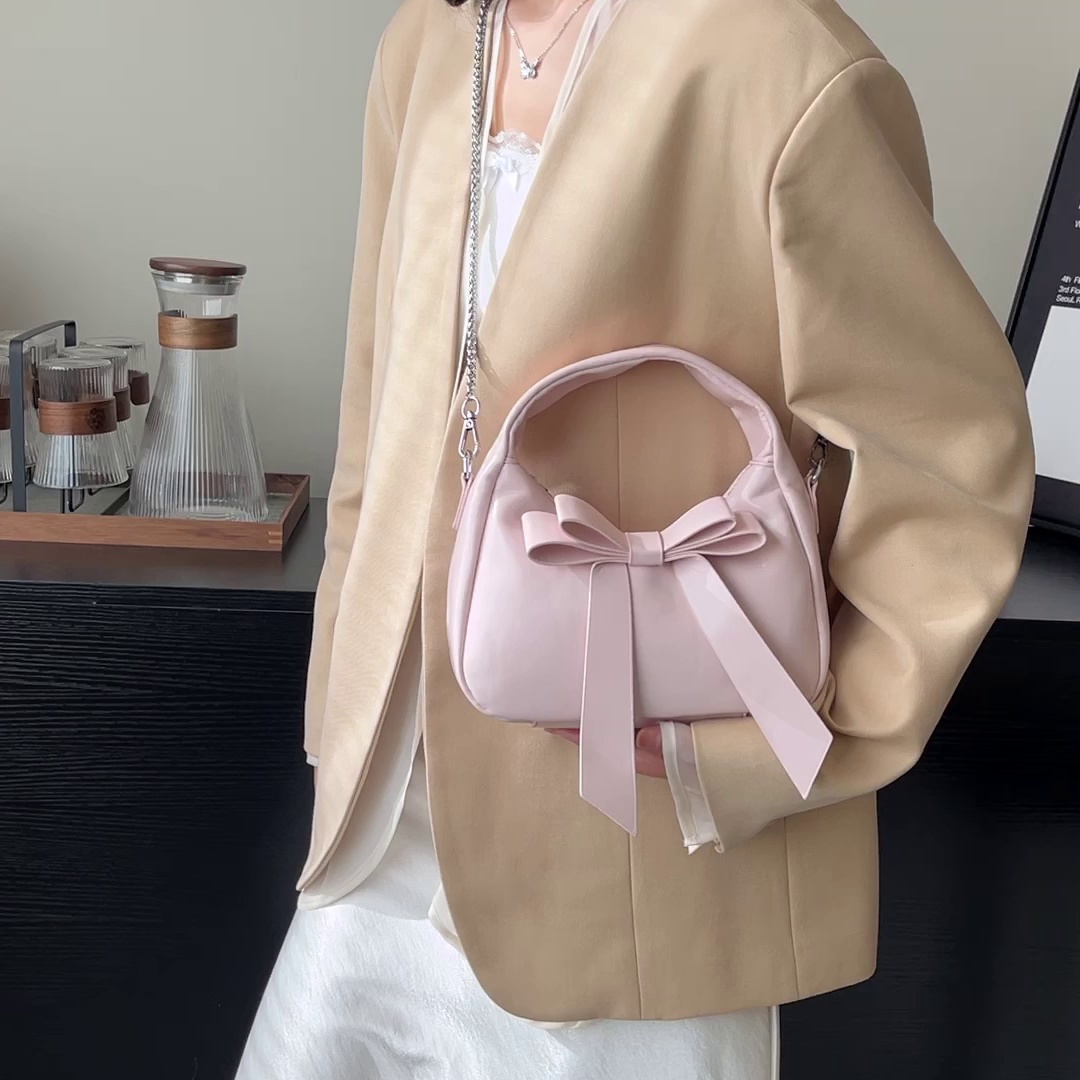 简约腋下包新款蝴蝶结手提包百搭单肩斜挎饺子包9062