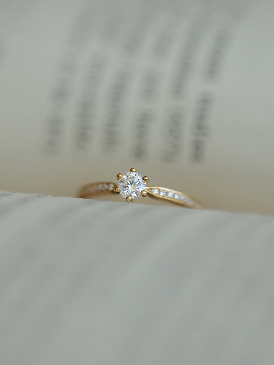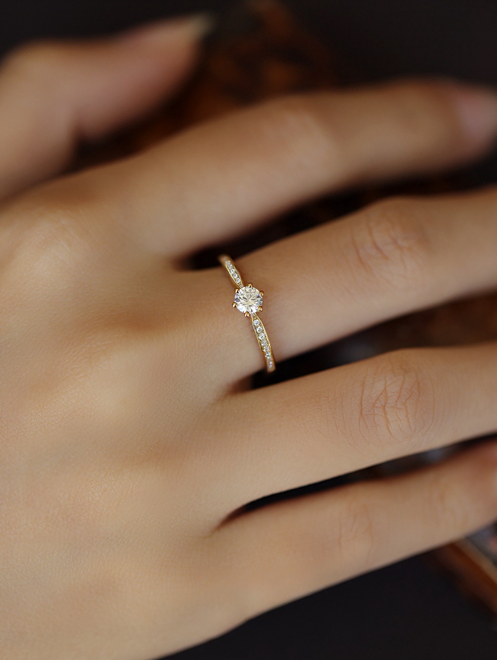 经典款六爪钻戒S925银镀14K金戒指锆石婚戒叠戴轻奢百搭礼物