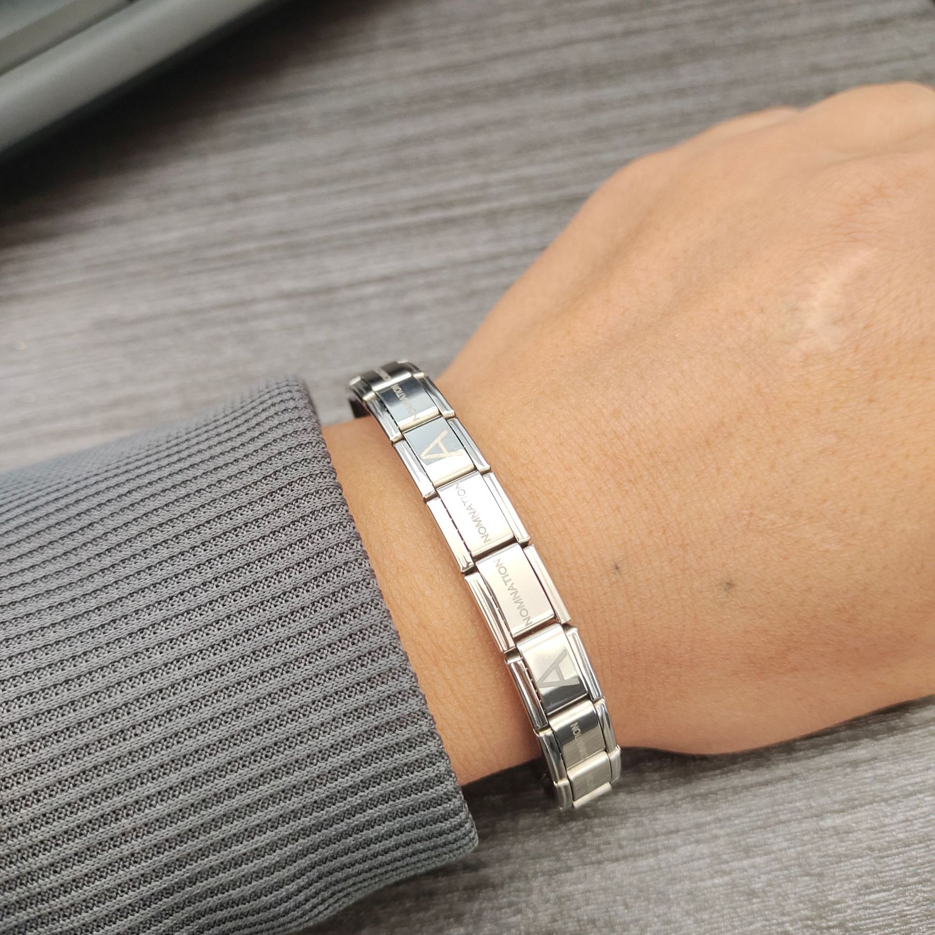 欧美热卖不锈钢弹力时尚手链可调节个性霸气男女士手镯刻字纪念品