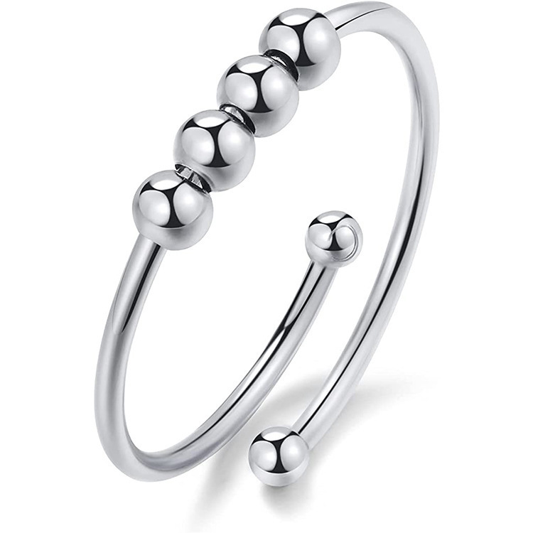 亚马逊跨境微动珠旋转器钛钢单圈螺旋自由旋转抗压力焦虑环戒指