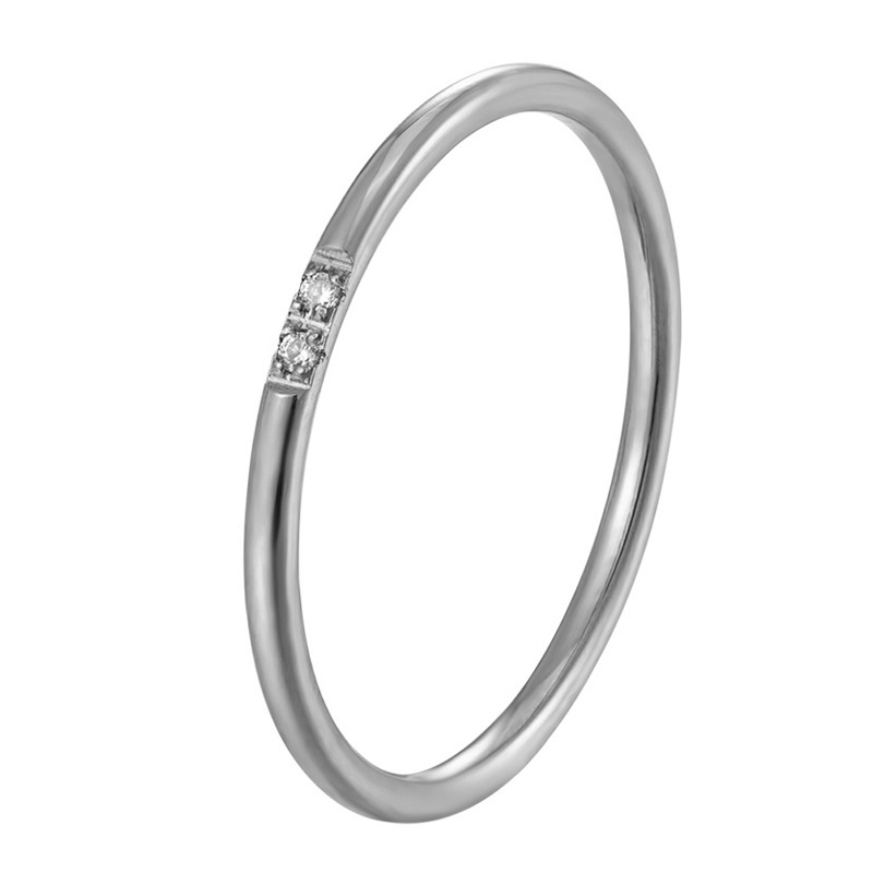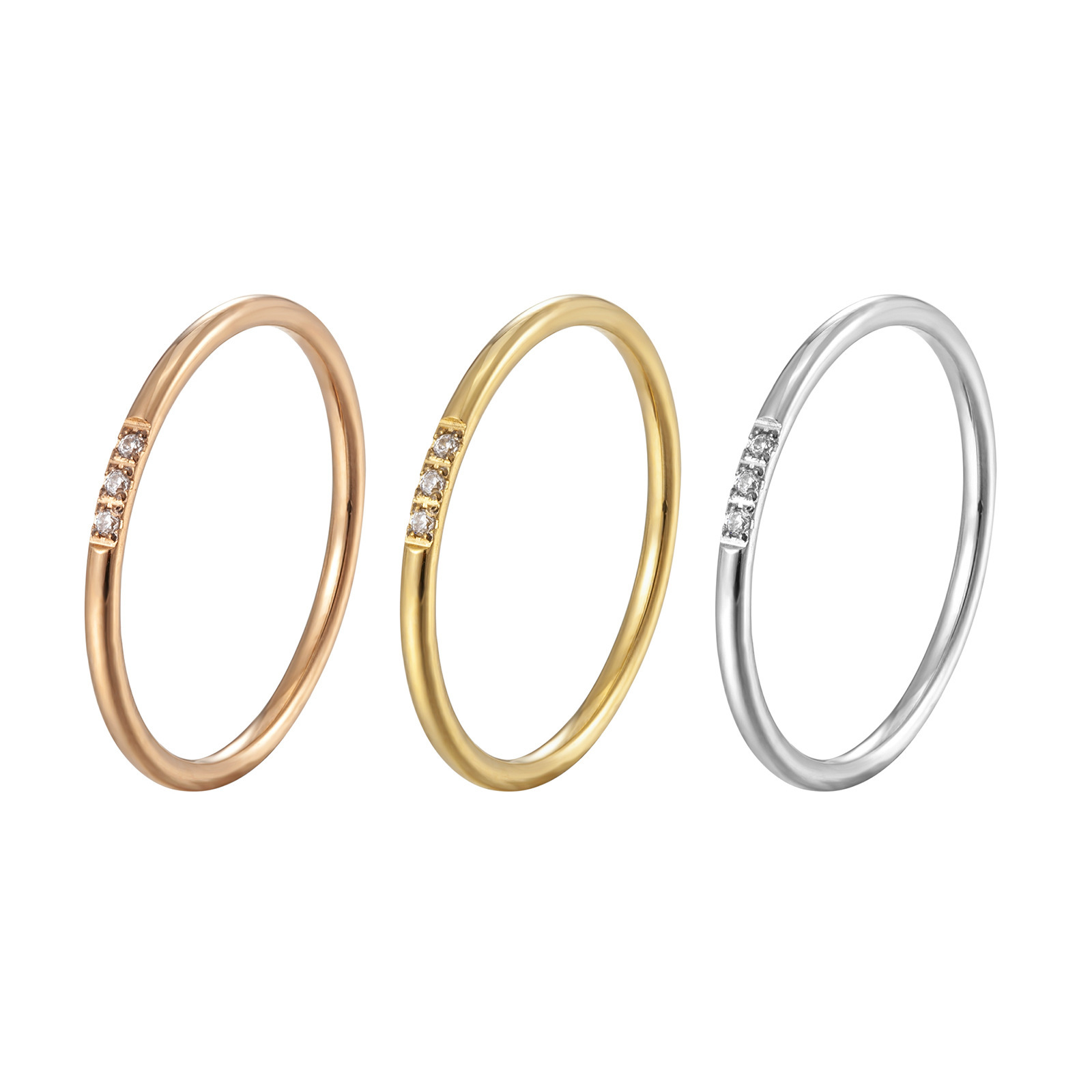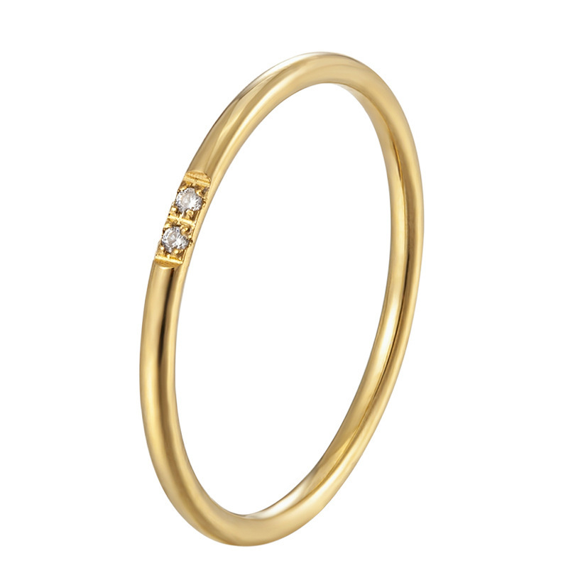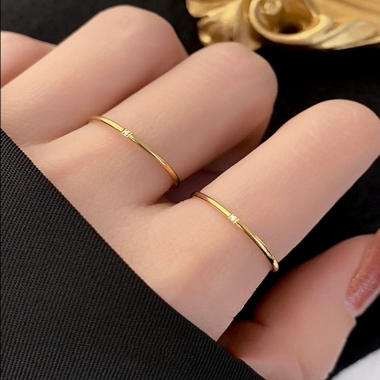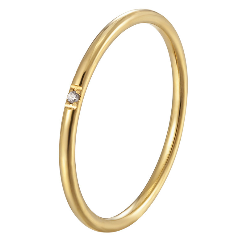 顶源 新款时尚轻奢冷淡风钛钢戒指女圆线素圈一粒钻戒指镀18K金色