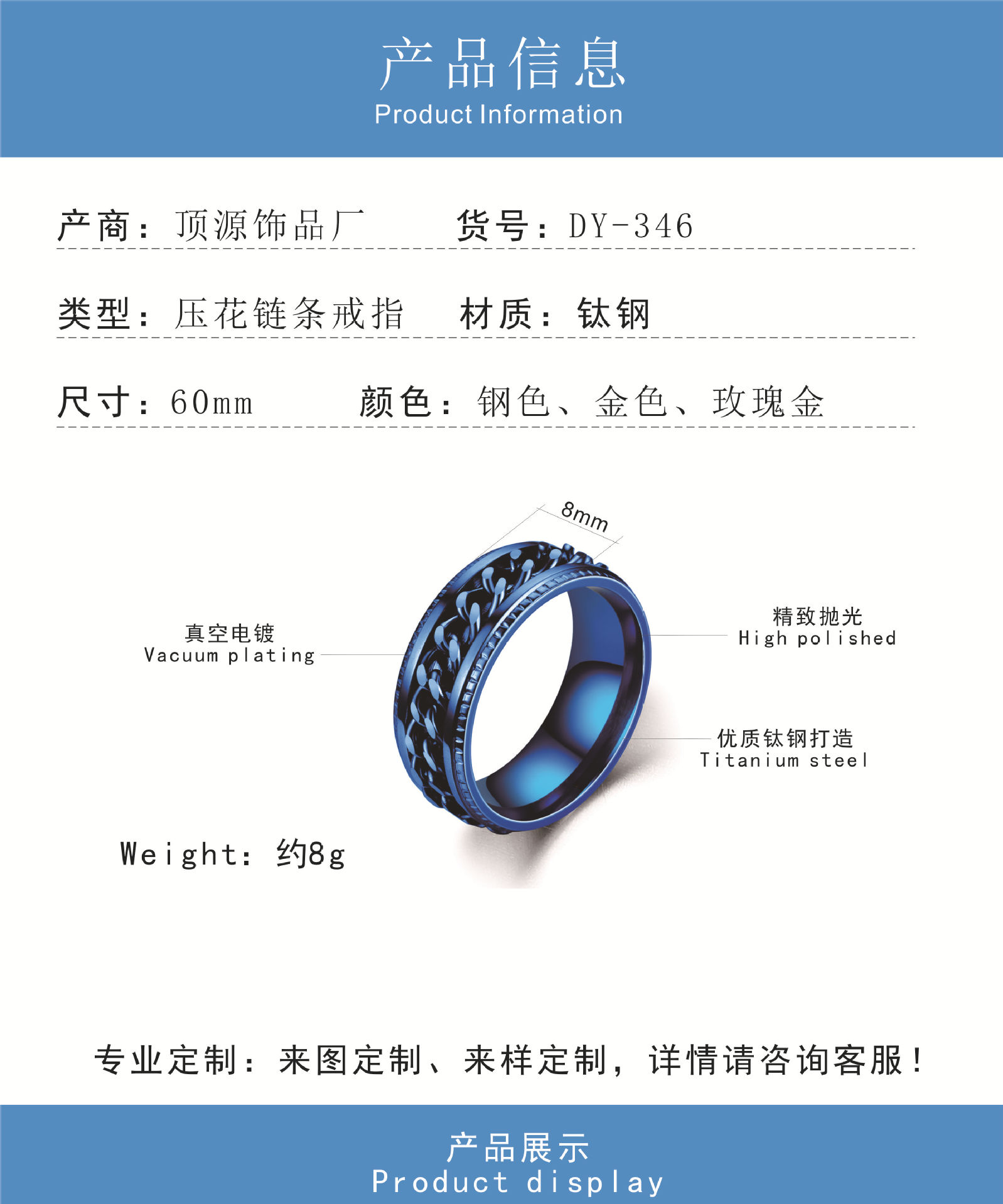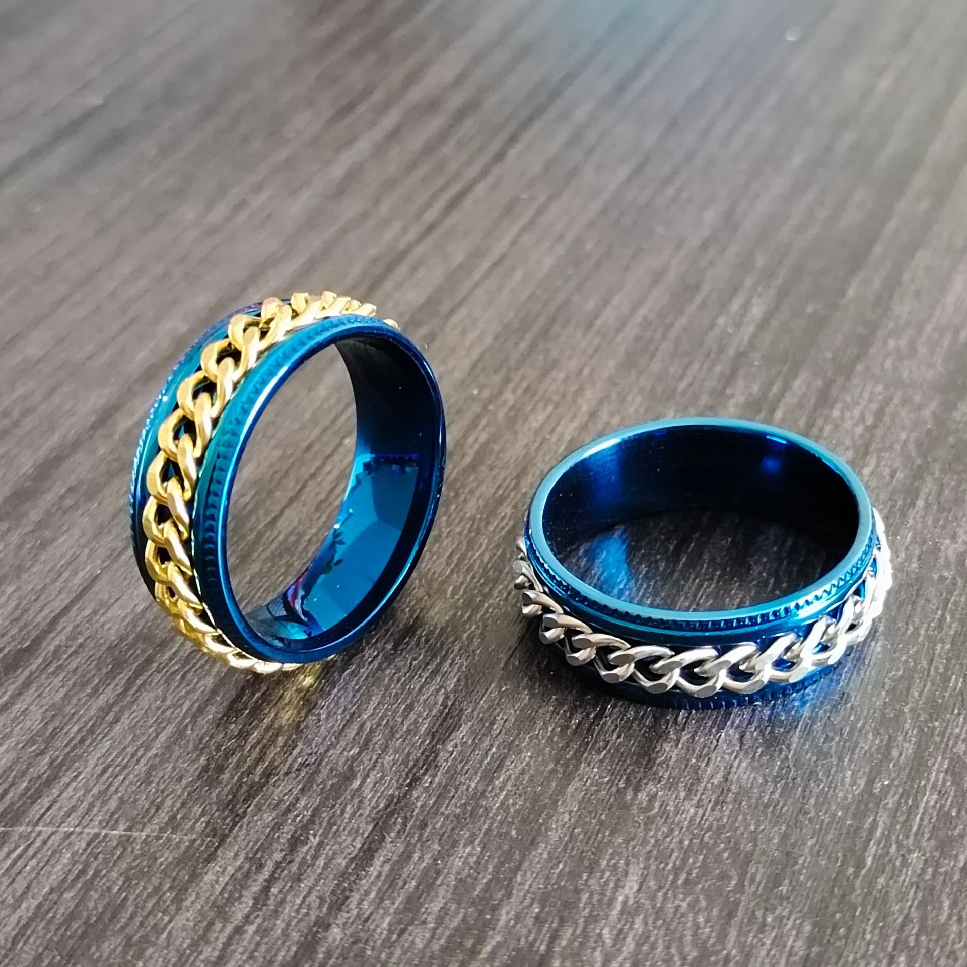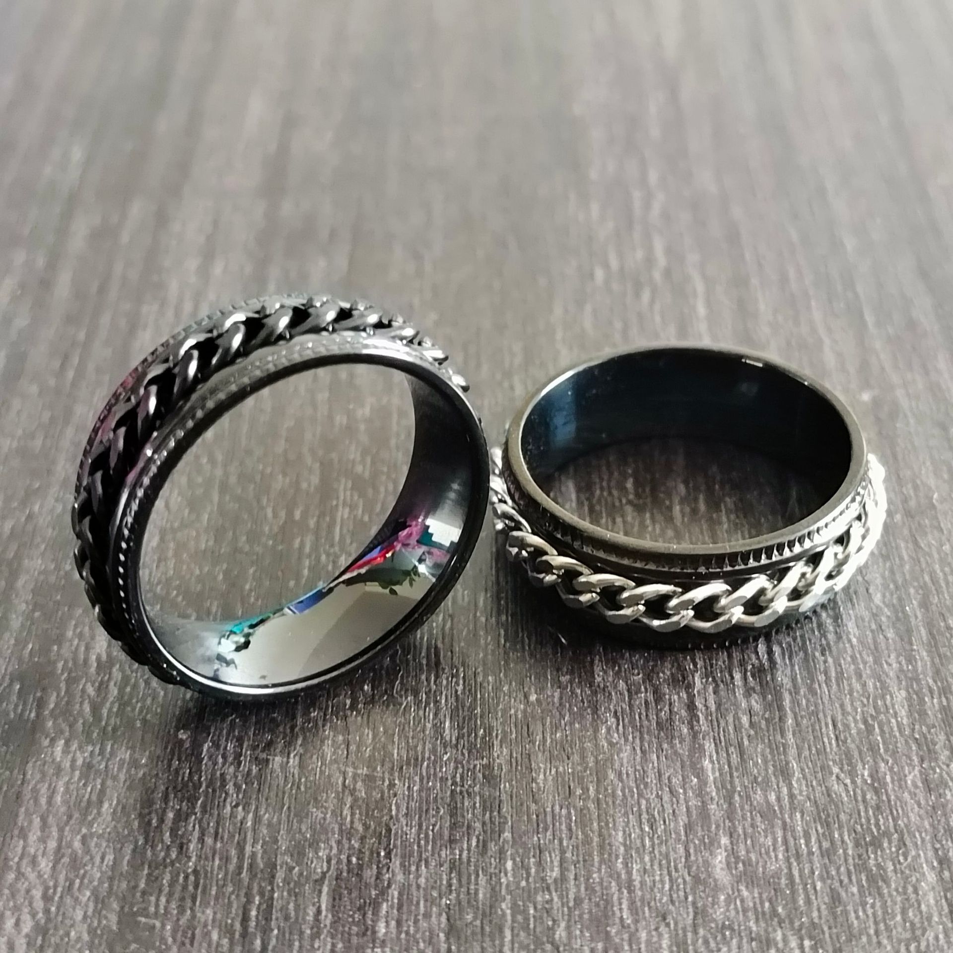 欧美抖音同款可转动链条钛钢戒指个性男双层压花不锈钢开瓶器指环