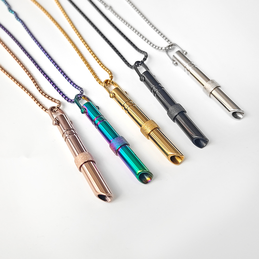 跨境热销冥想正念吊坠调节呼吸钛钢珍珠项链转动磨砂圆管解压吊坠