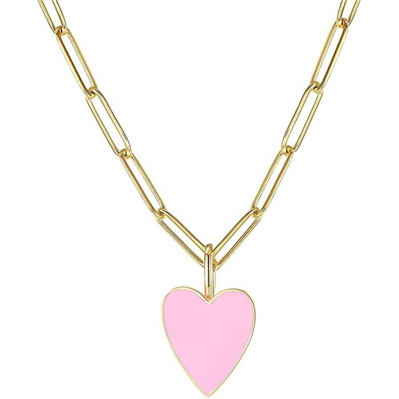 顶源彩色心形首饰镀金不锈钢回形针项链可爱精致项链女性少年女孩