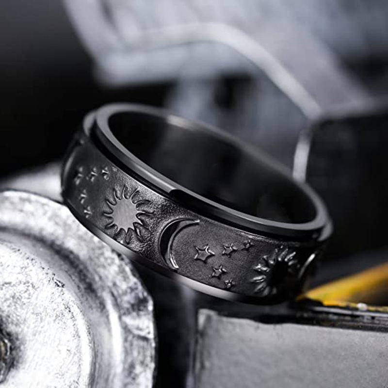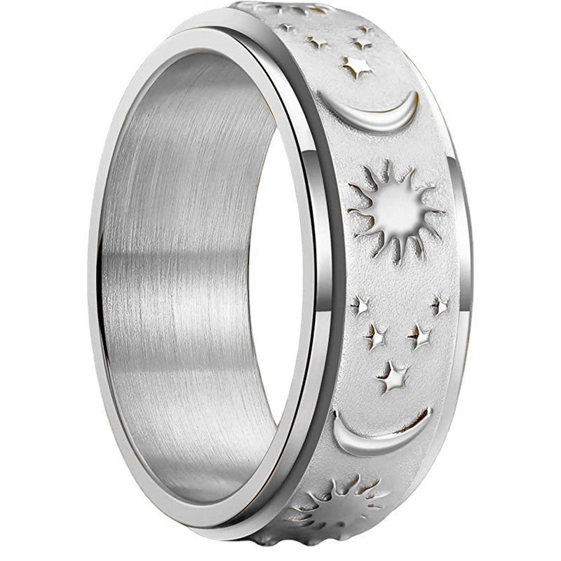 顶源亚马逊星星月亮太阳钛钢戒指环可旋转波西米亚风解压戒指饰品