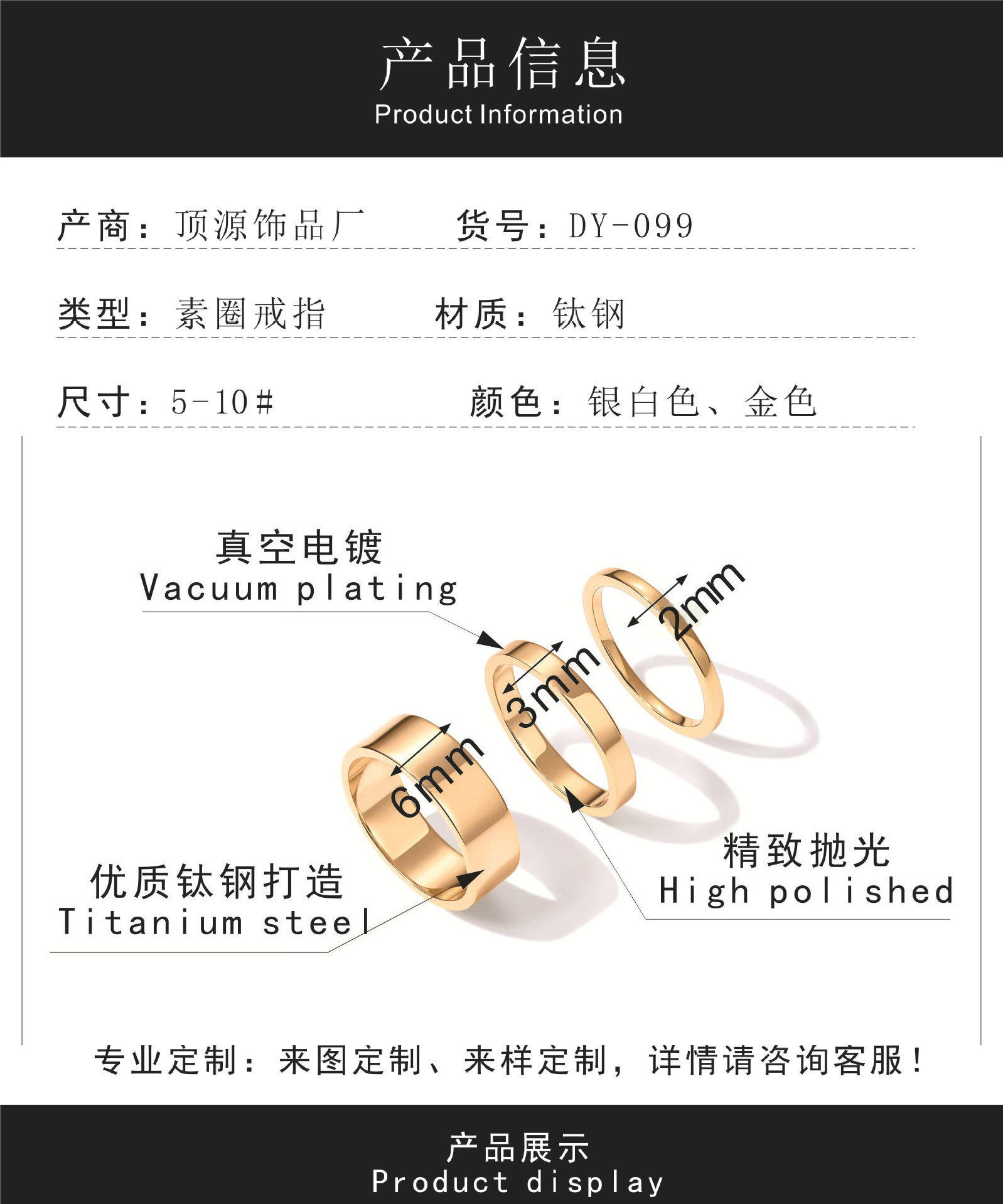 欧美跨境热销不锈钢批发18K镀金3环套装小众简约女式金色堆叠戒指