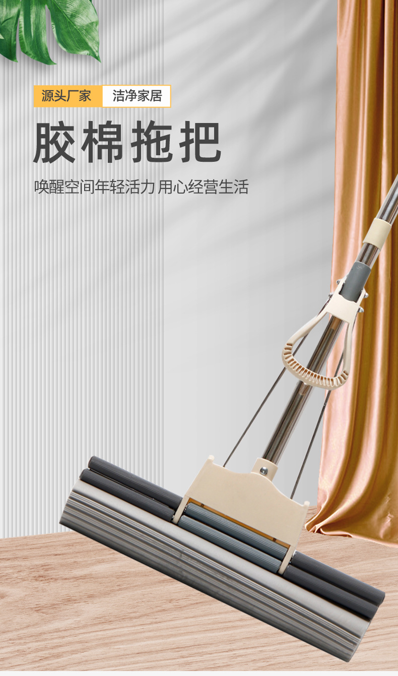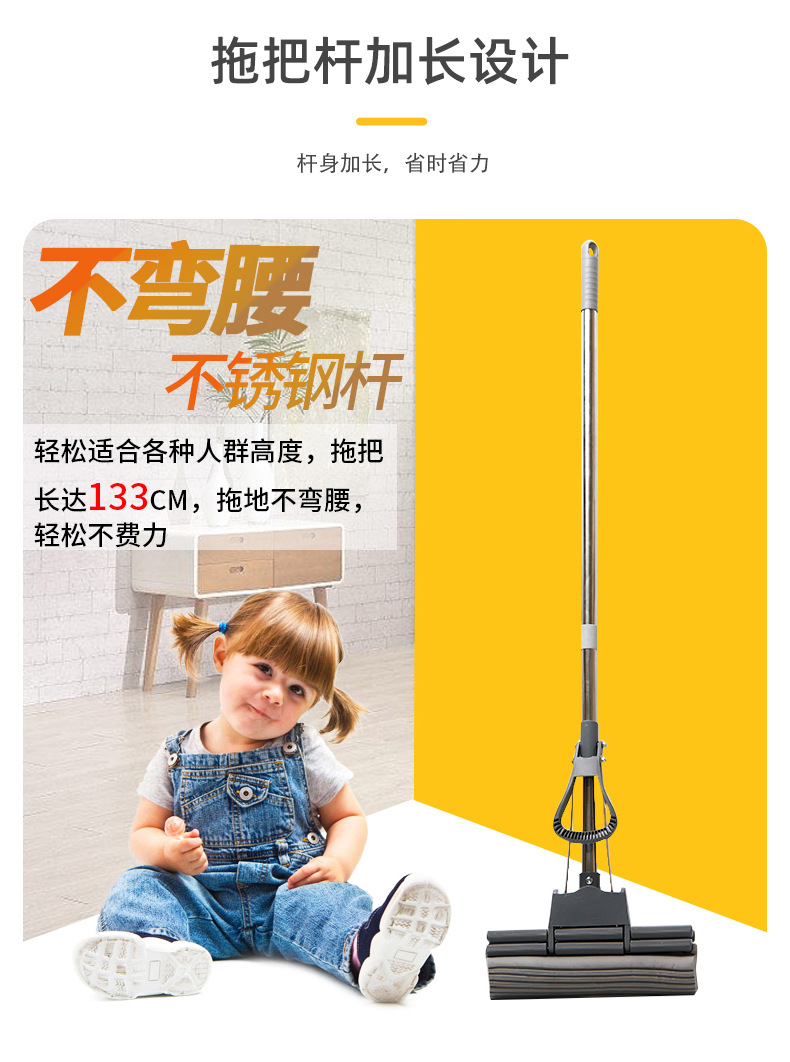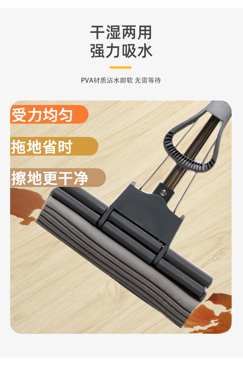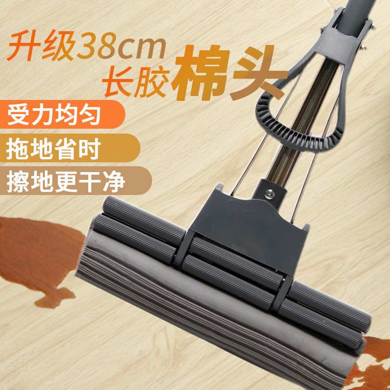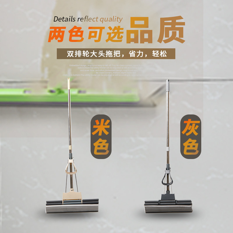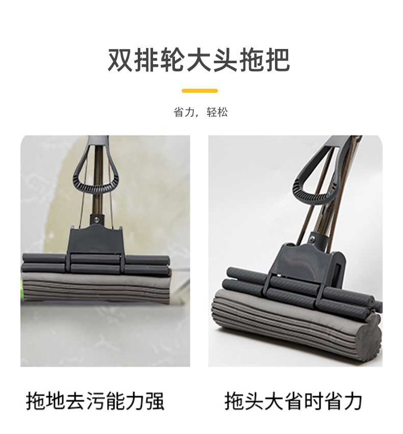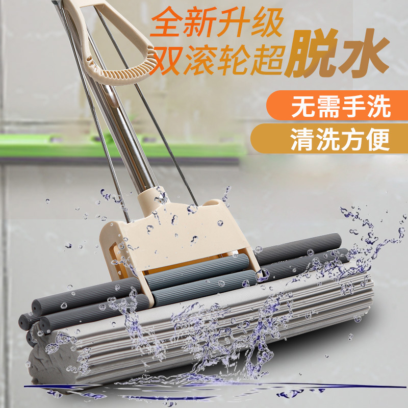 新款加宽加大海绵拖把家用免手洗懒人吸水胶棉拖把双排滚轮拖把