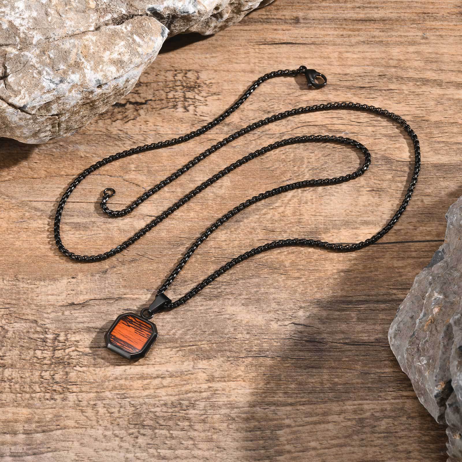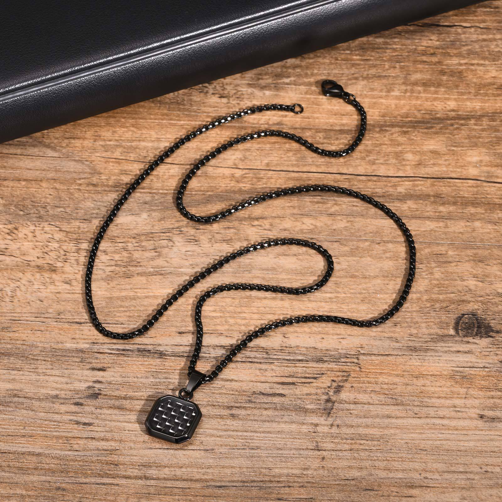 不锈钢黑色方形吊坠男士 卫衣叠戴项链 长款毛衣链配饰NC-892