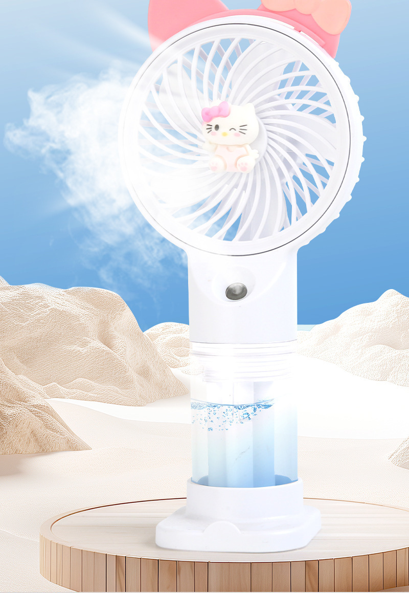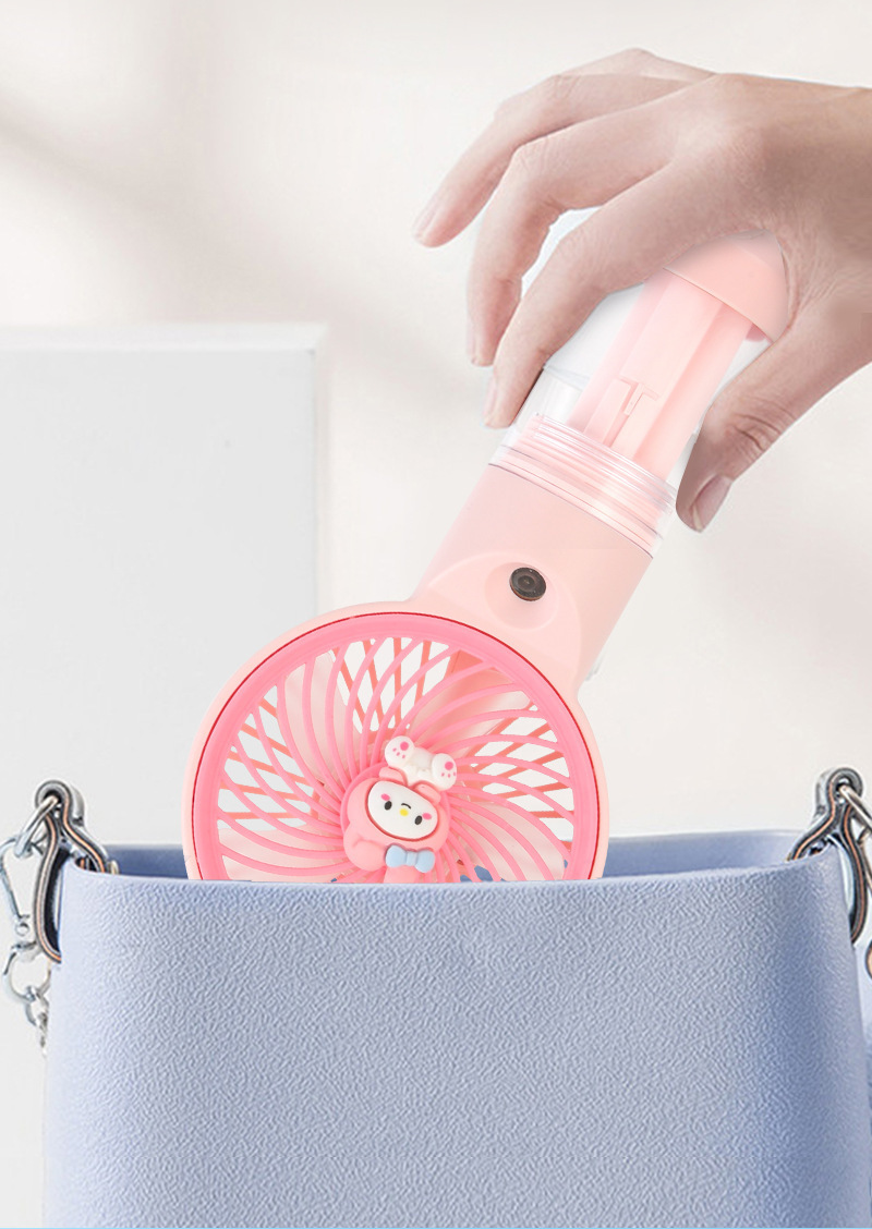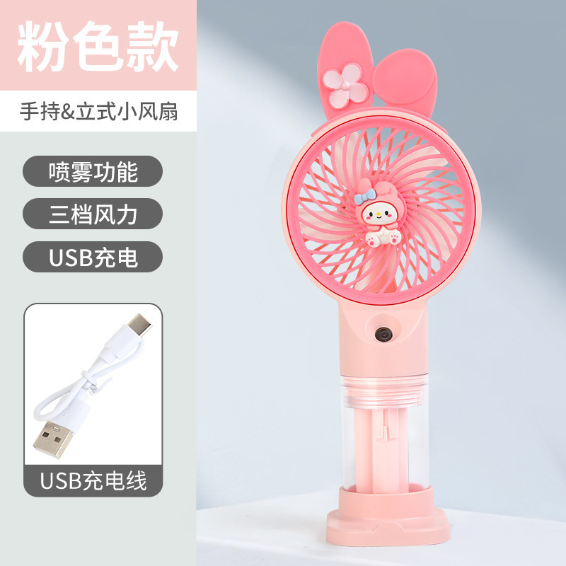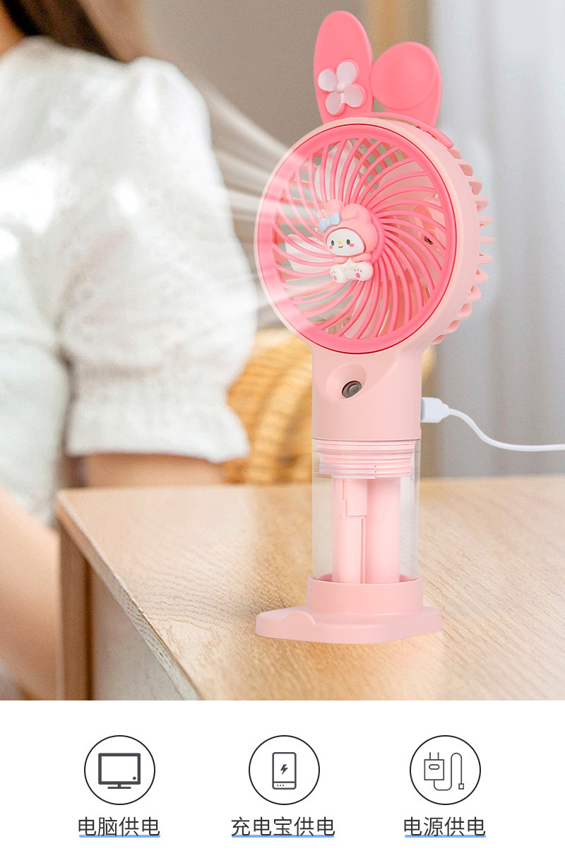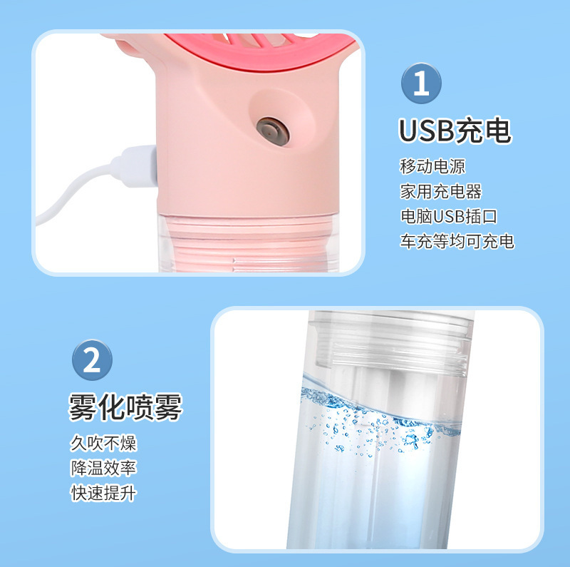 跨境卡通迷你喷雾手持小电风扇 USB充电长续航小巧大风力桌面风扇