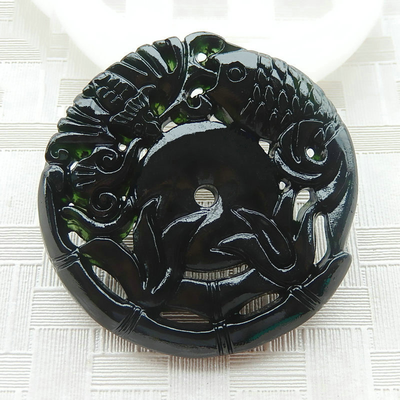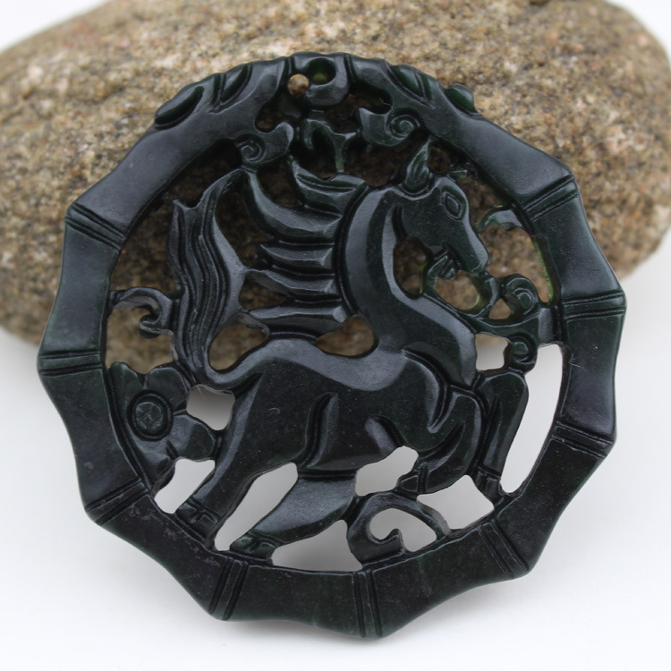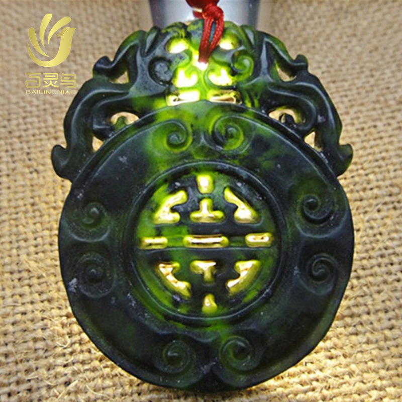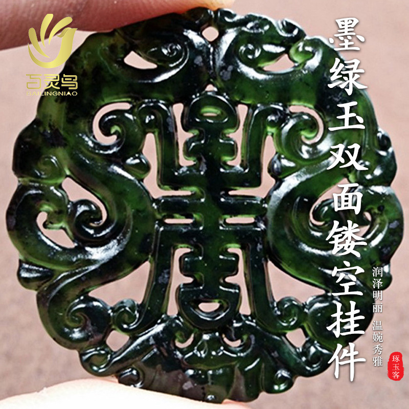 天然药王石墨绿玉吊坠多款墨玉镂空双面挂件橄榄绿陨石汉服配饰