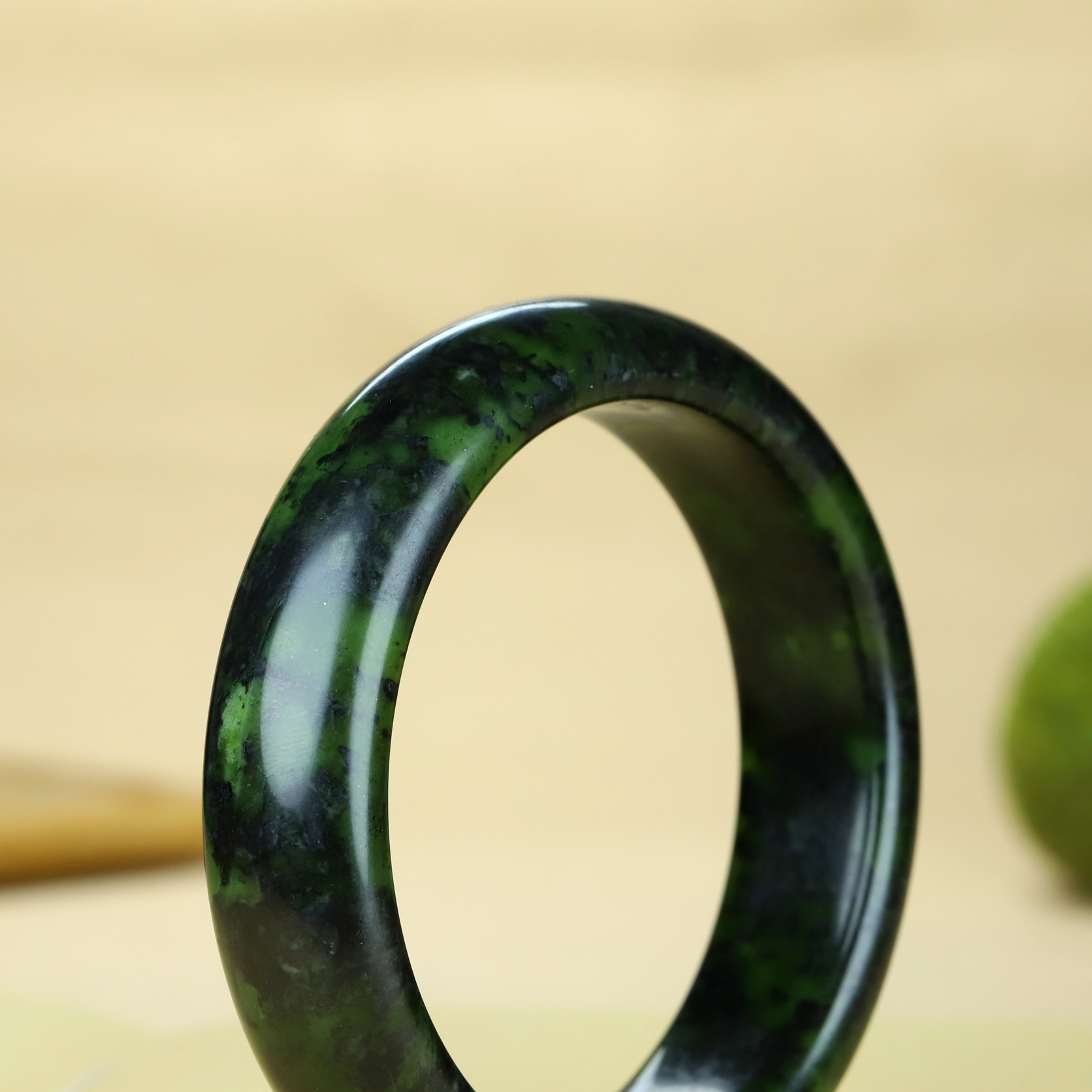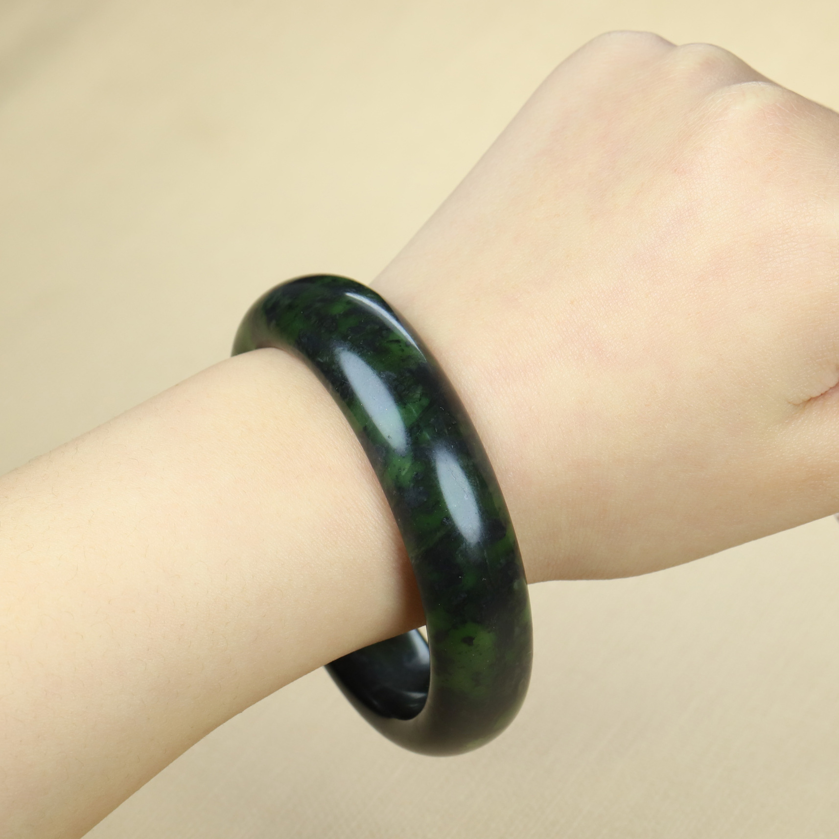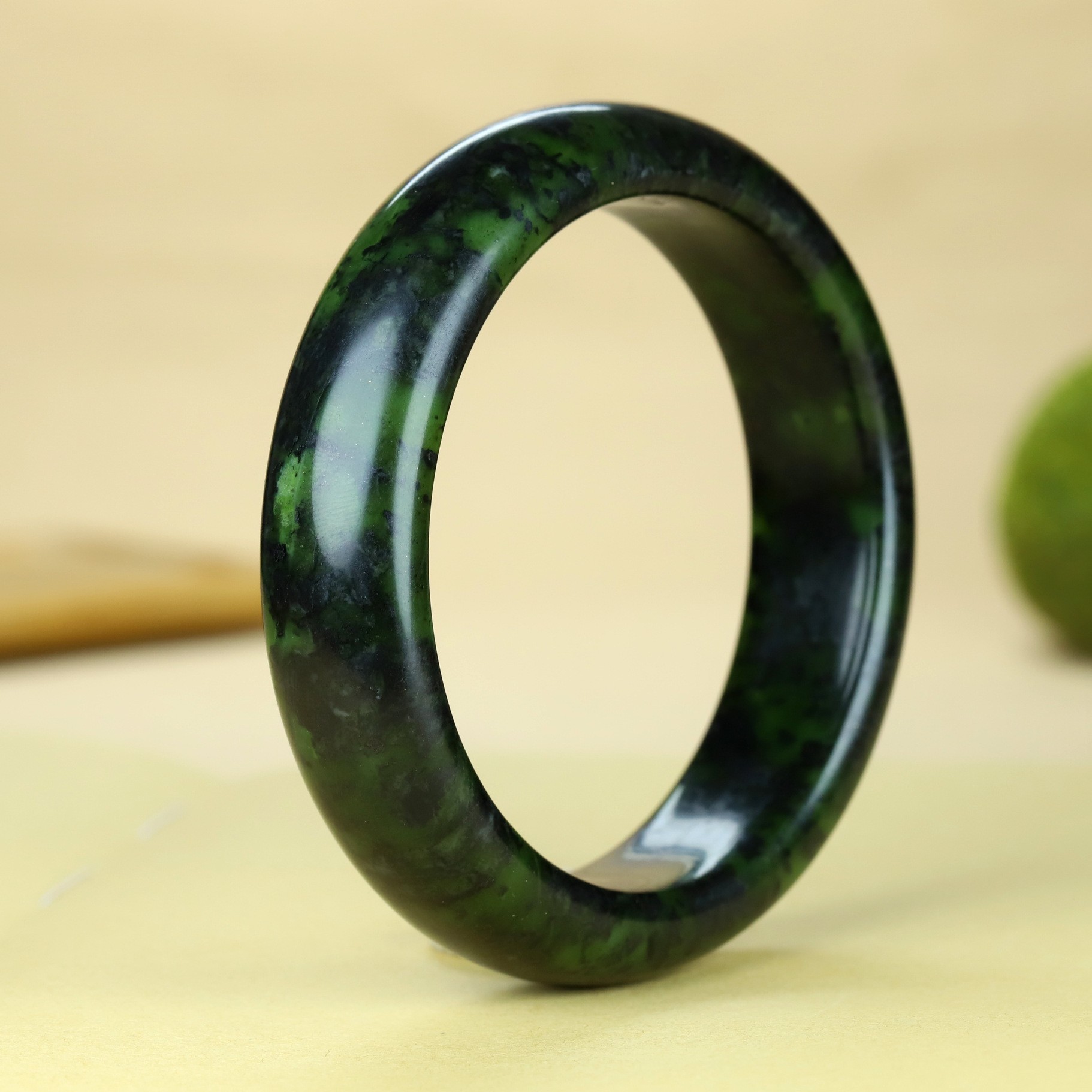 天然西藏玉药王石手镯墨绿玉橄榄绿陨石玉镯玉石玉器镯子直播货源