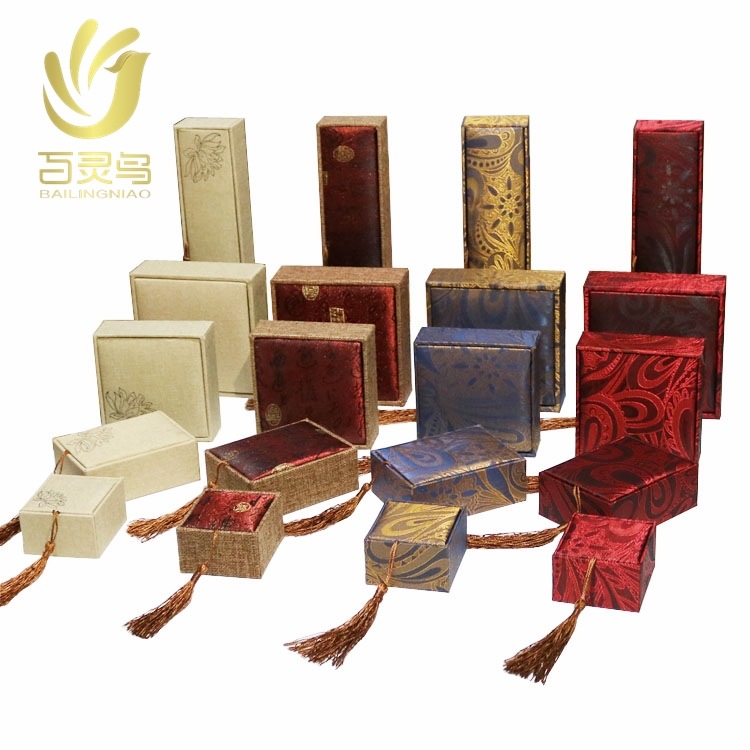 新品流苏麻布手串手链盒珠宝饰品包装盒手镯盒挂件项链盒子