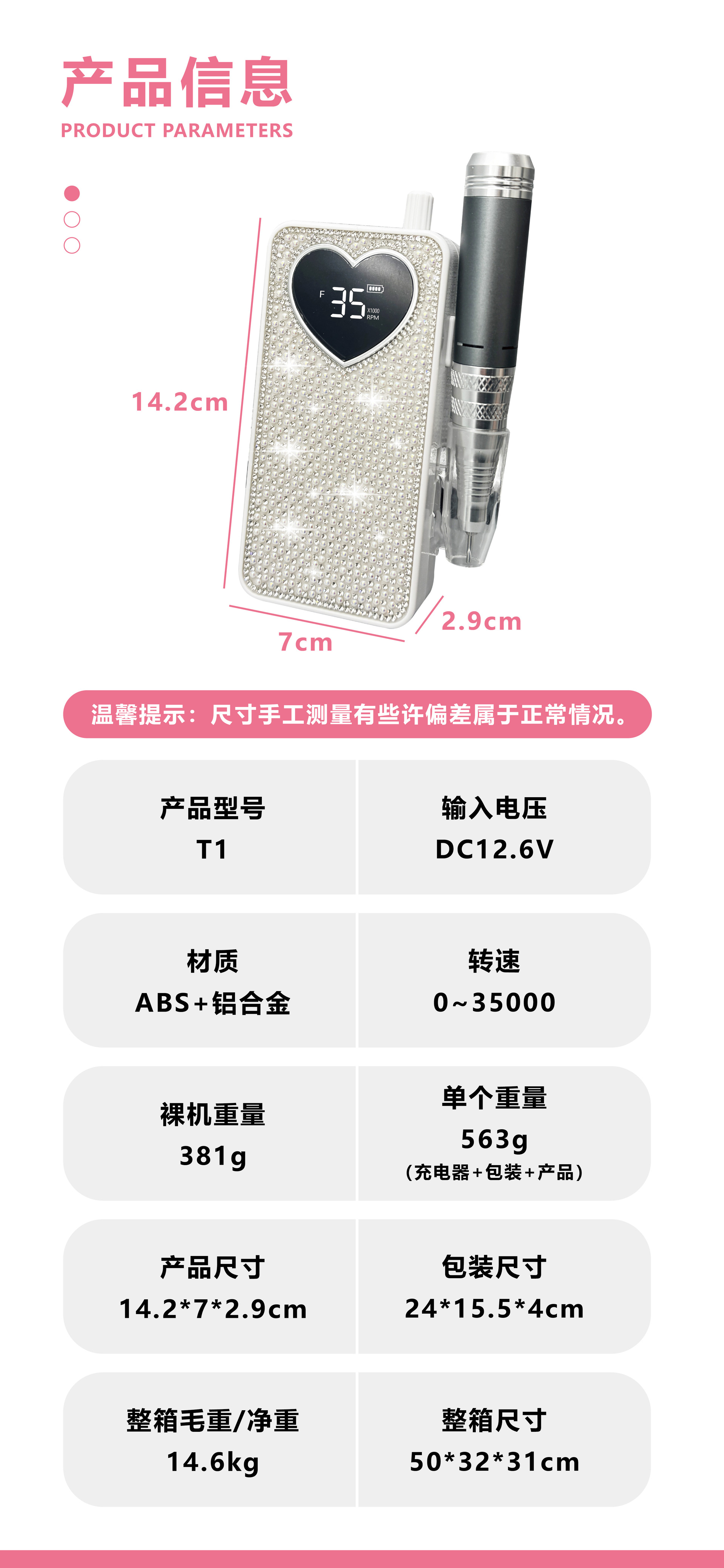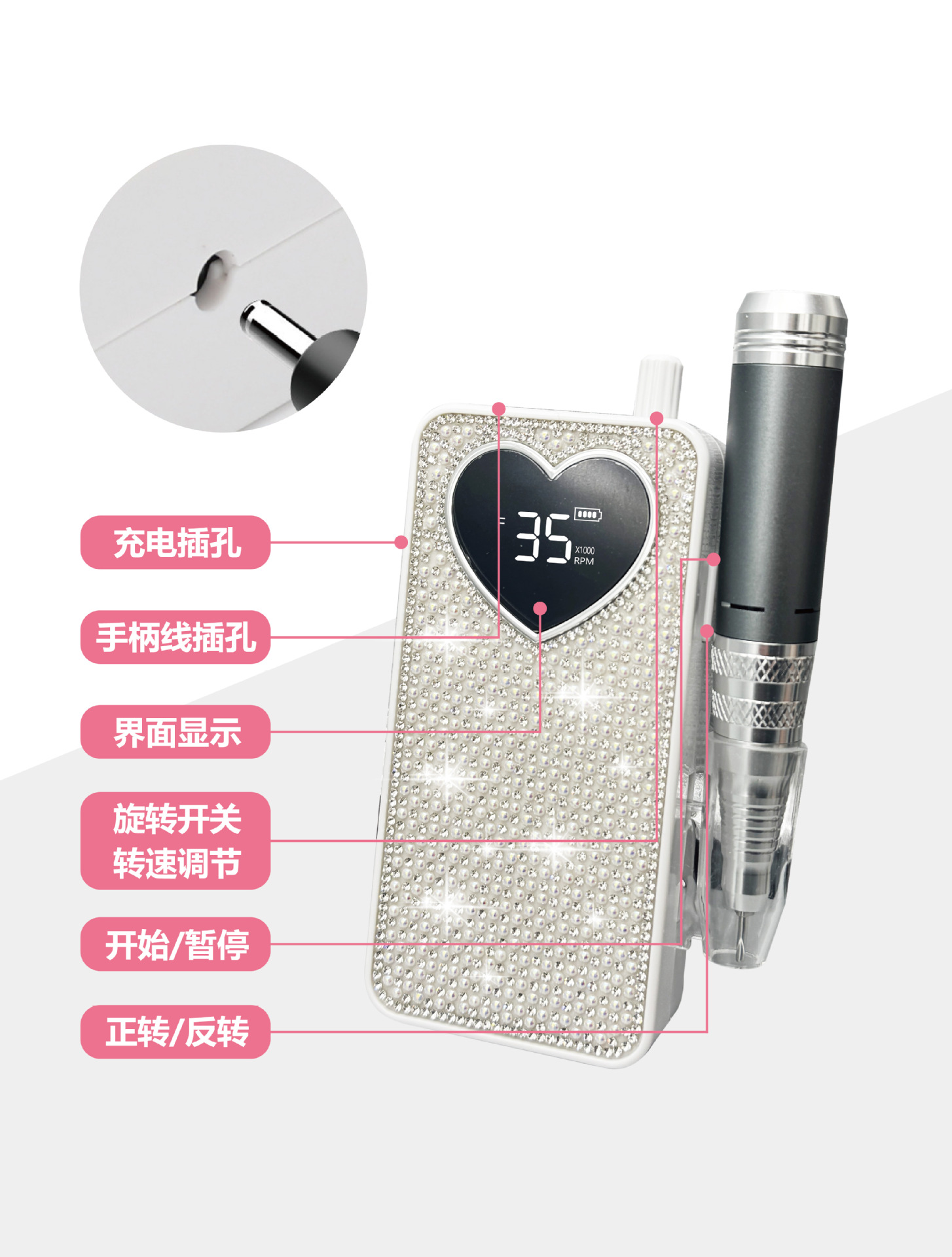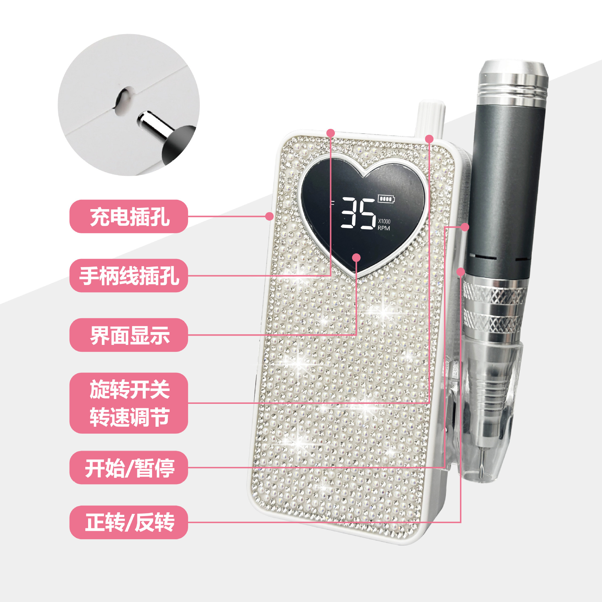 美甲打磨机充电不发烫贴款钻石珍珠款手持美甲卸甲工具