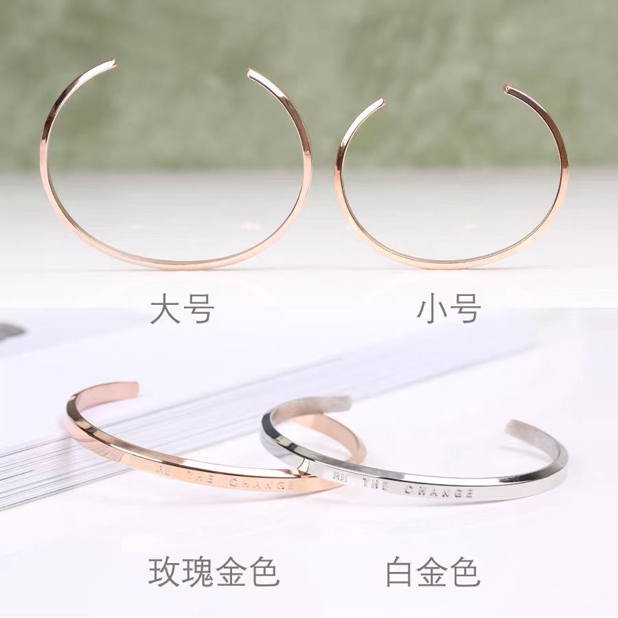 欧美跨境时尚百搭情侣手环 dw钛钢开口手镯斜面不锈钢C形手环手镯