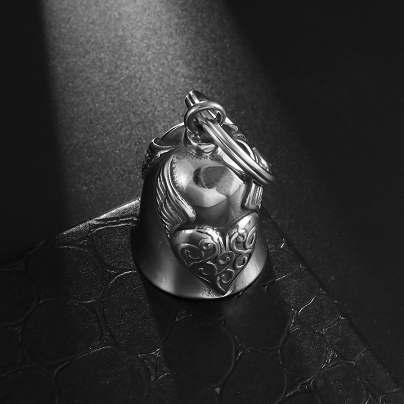 亚马逊新款 复古桃心翅膀铃铛吊坠 男女士机车骷髅铃铛项链吊坠