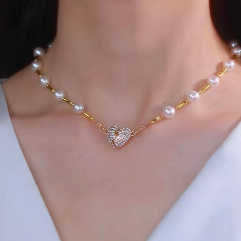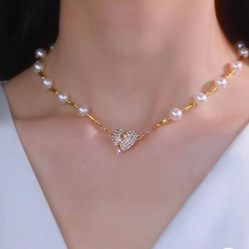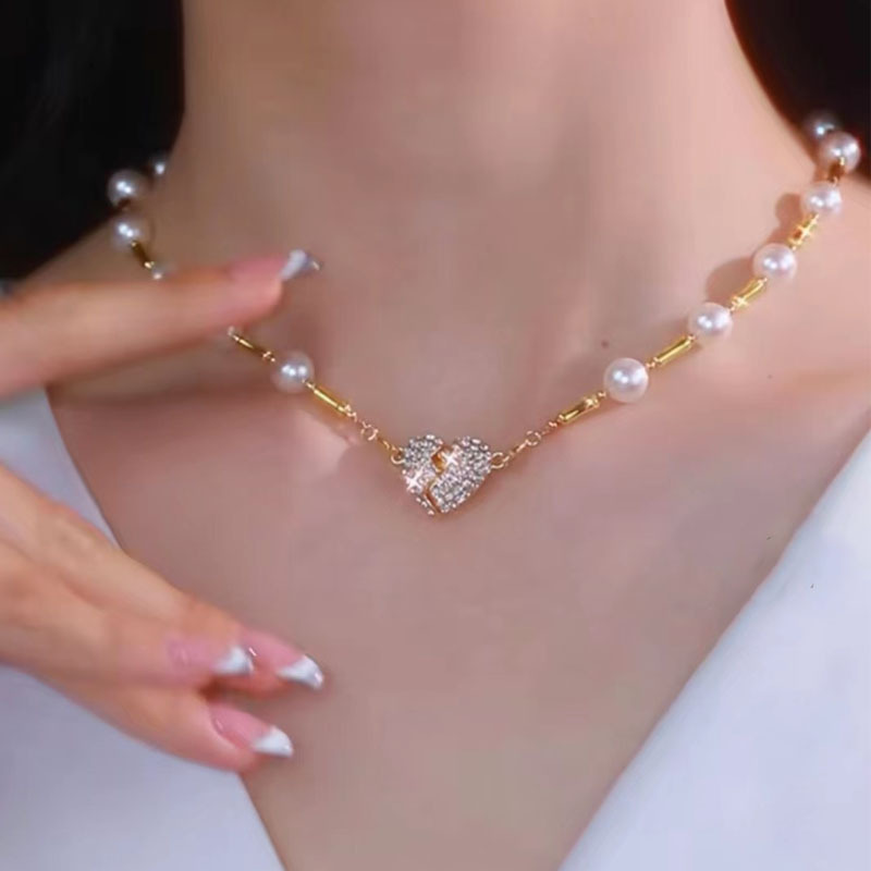 爱心磁吸心形珍珠项链女简约时尚小众设计气质锁骨链网红新款项链