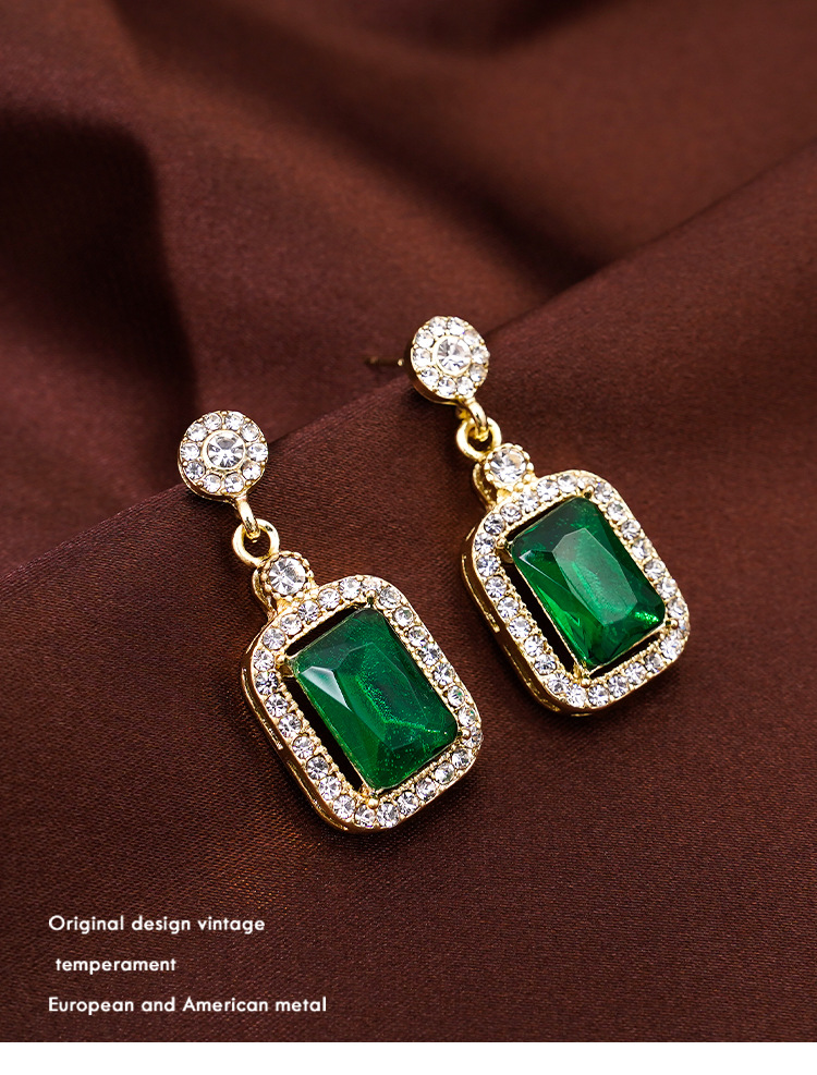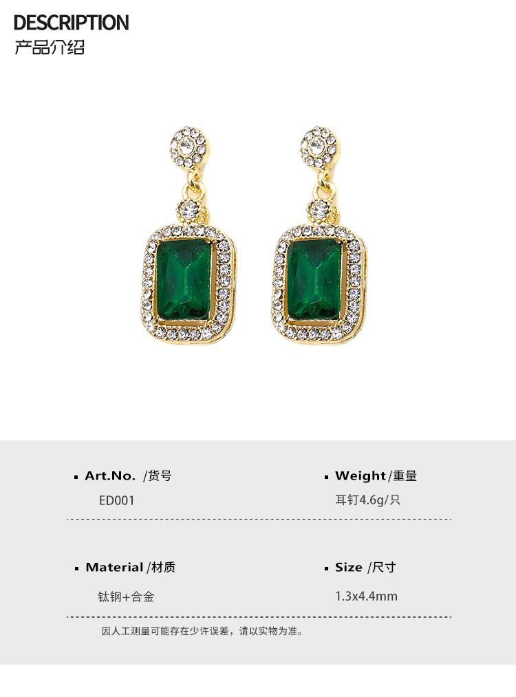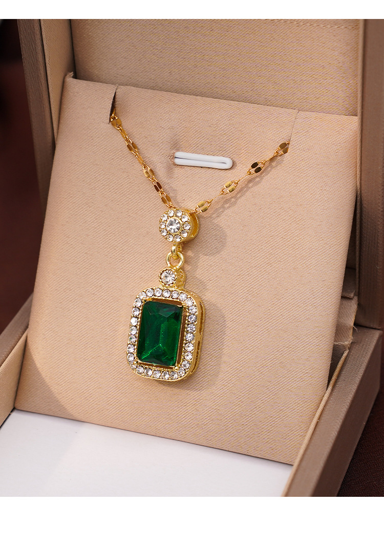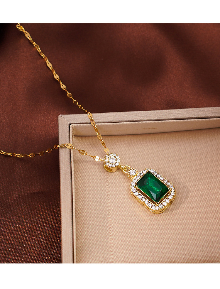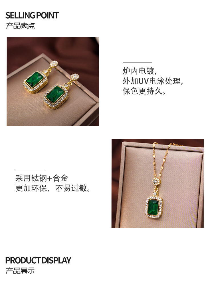新款高级设计小众百搭轻奢绿祖母红色钛钢项链耳钉戒指三件套批发