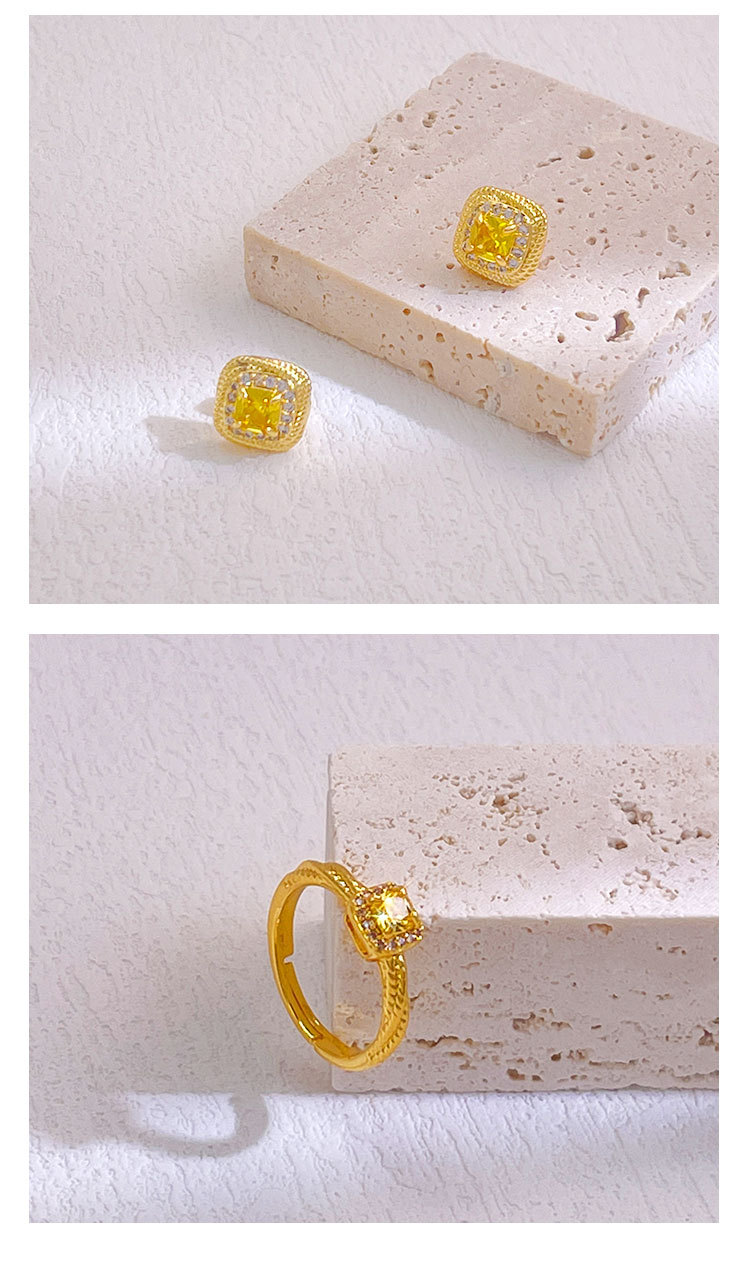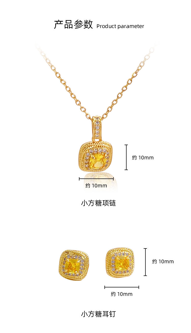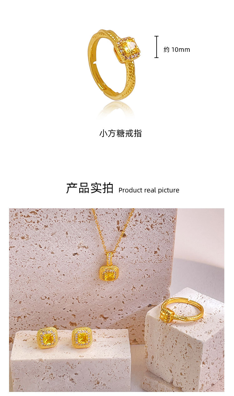 小方糖黄钻戒指项链女抖音爆款镀18k真金锁骨链首饰品久不掉色