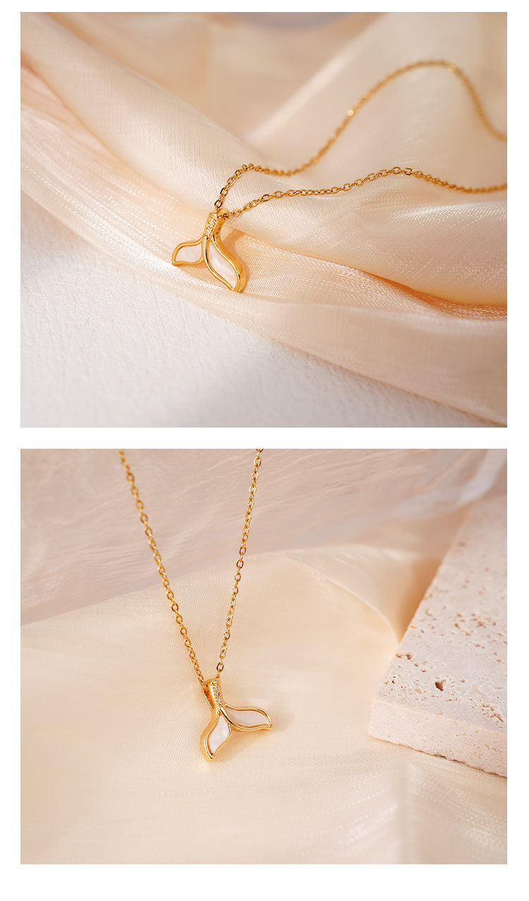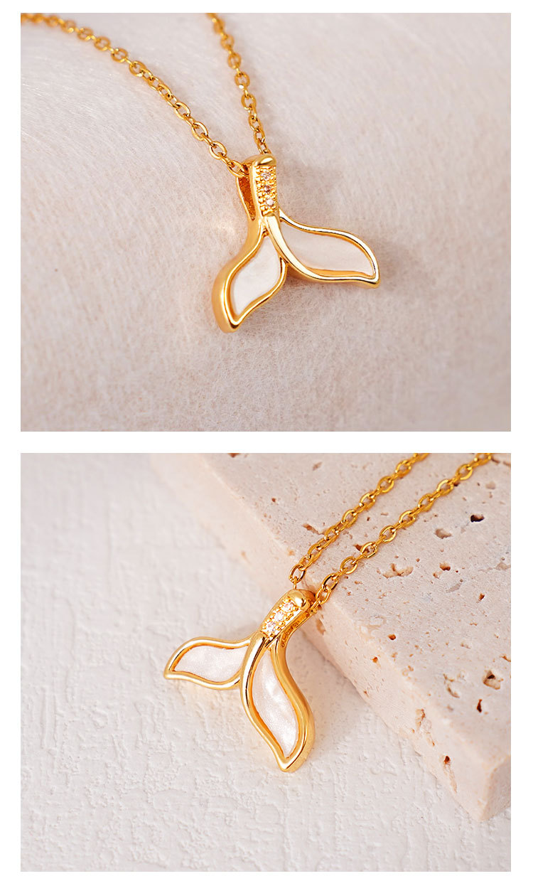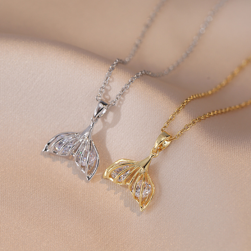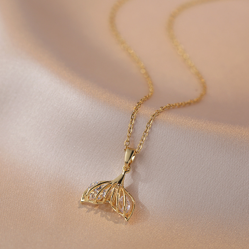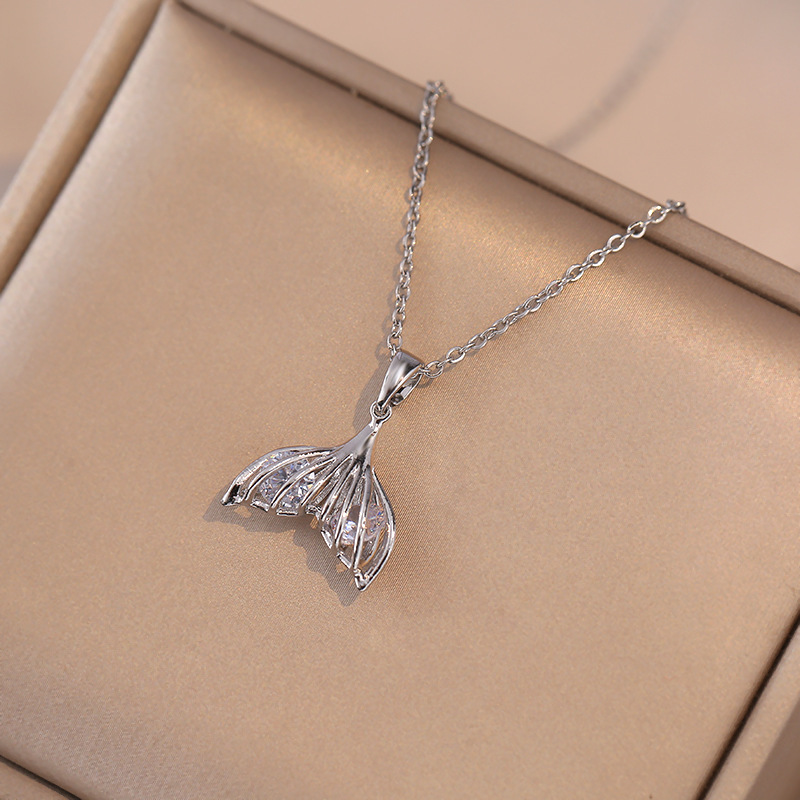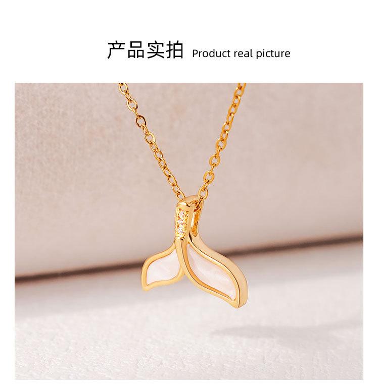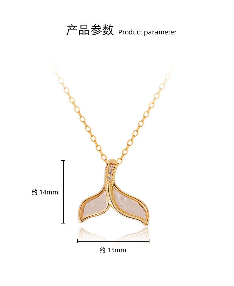 小众高级感镂空鱼尾项链饰品简约锆石吊坠扁圆珠片项链短款锁骨链